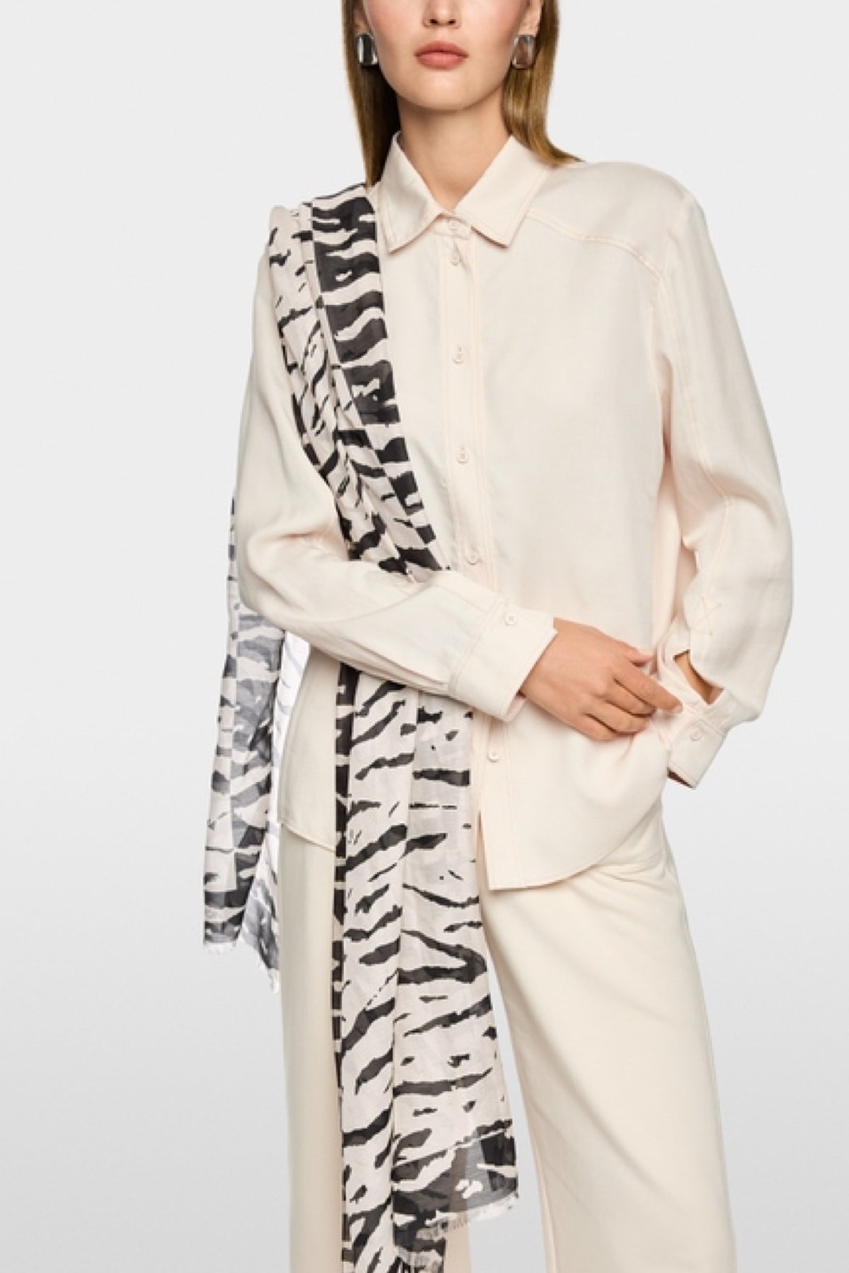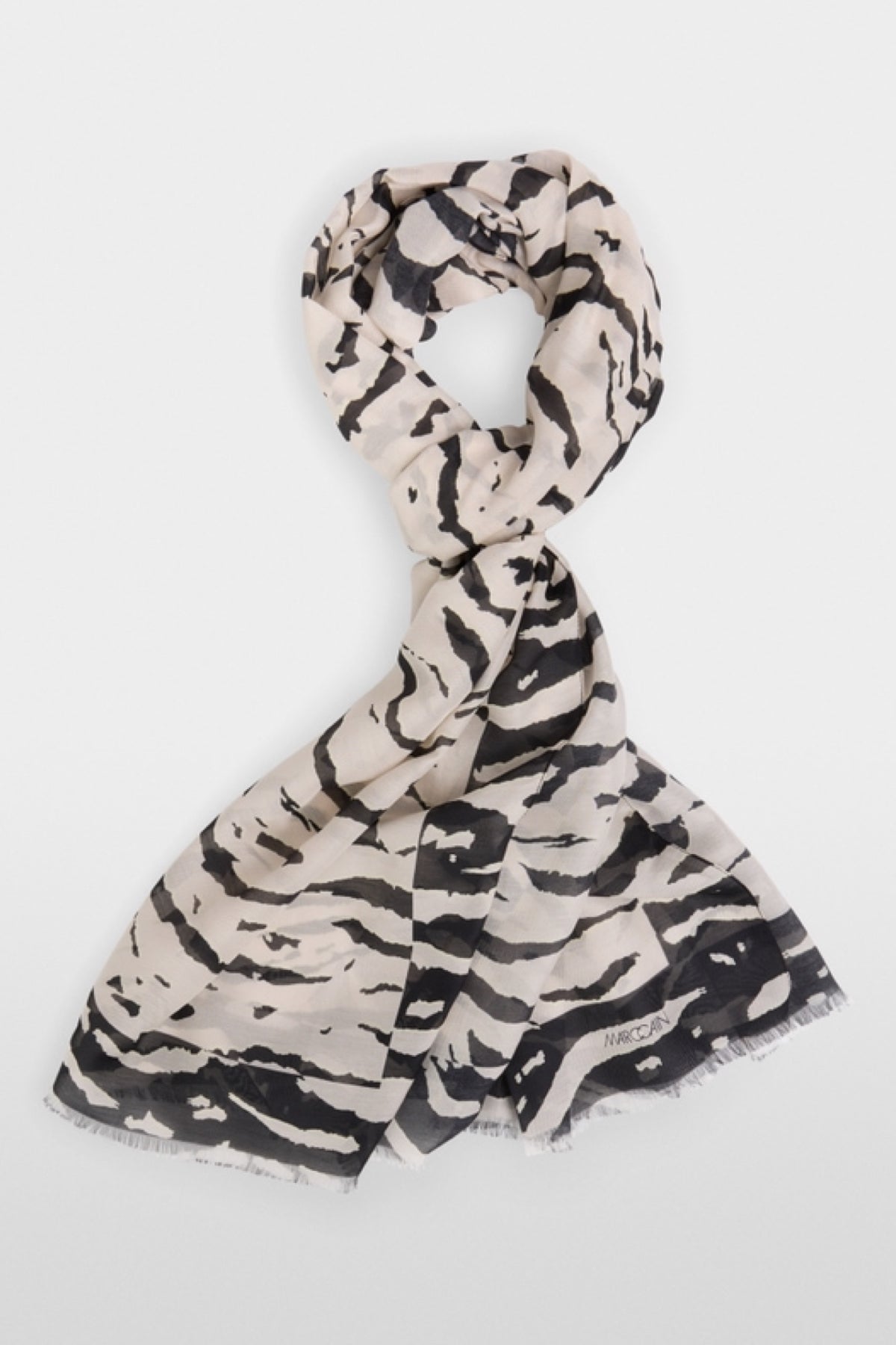 Description : Écharpe allongée en mélange de fibres douces avec du coton et de la soie. L'imprimé intégral accrocheur attire tous les regards et apporte une touche particulière à chaque tenue. Les franges fines confèrent à cet accessoire une note décontractée.