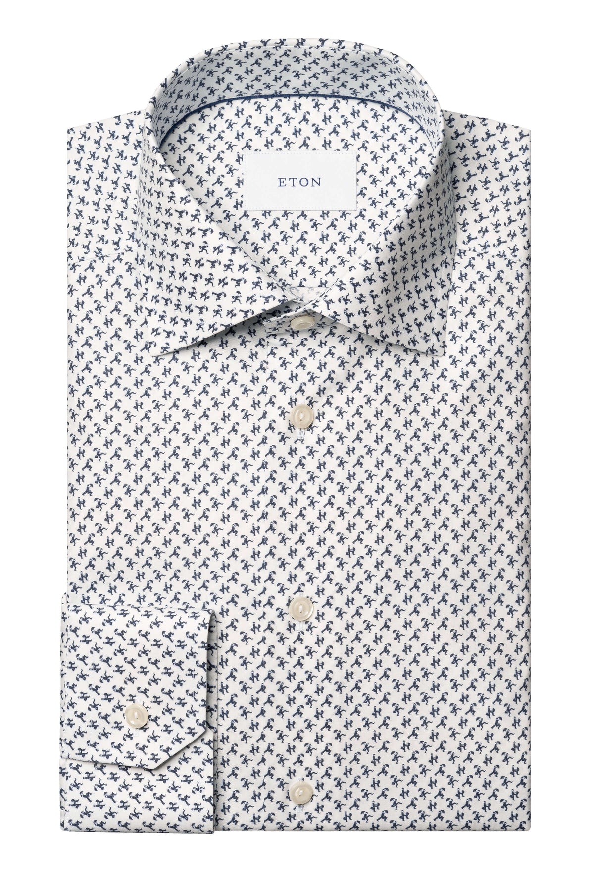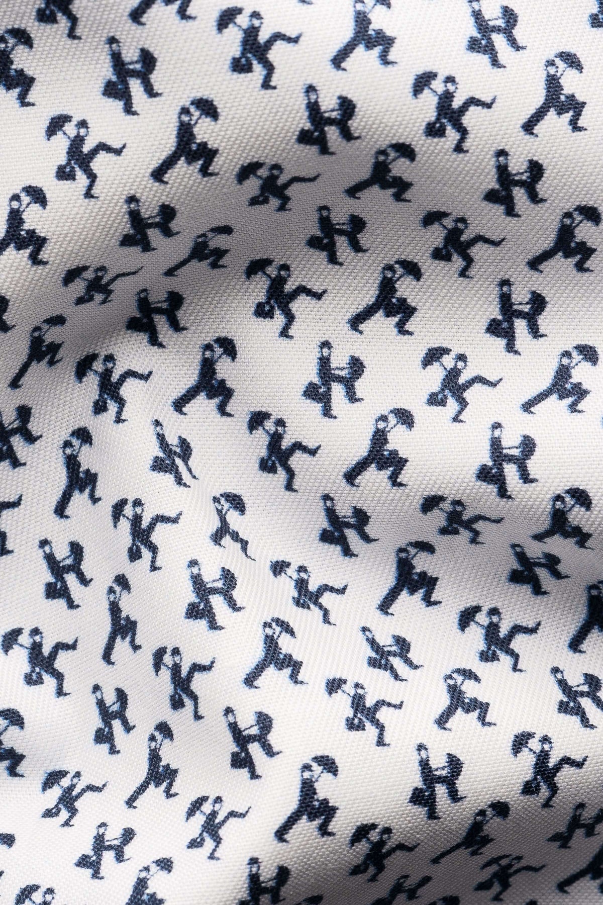 Description: Cette chemise habillée se distingue par son imprimé original représentant de petites silhouettes en mouvement, ajoutant une touche de fantaisie subtile à une pièce classique. Sa coupe élégante et son tissu raffiné en font un choix idéal pour apporter de la personnalité à vos tenues formelles. Conseil style : portez-la sous un veston uni pour mettre en valeur son motif unique.