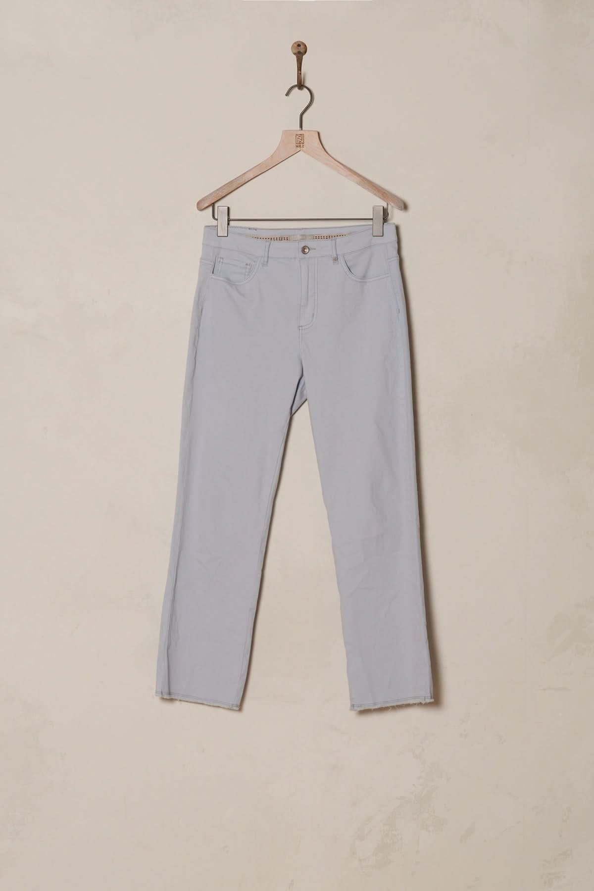 Pantalon bootcut en coton bio, couleur bleu clair, avec style chic et confortable pour un look bohème.