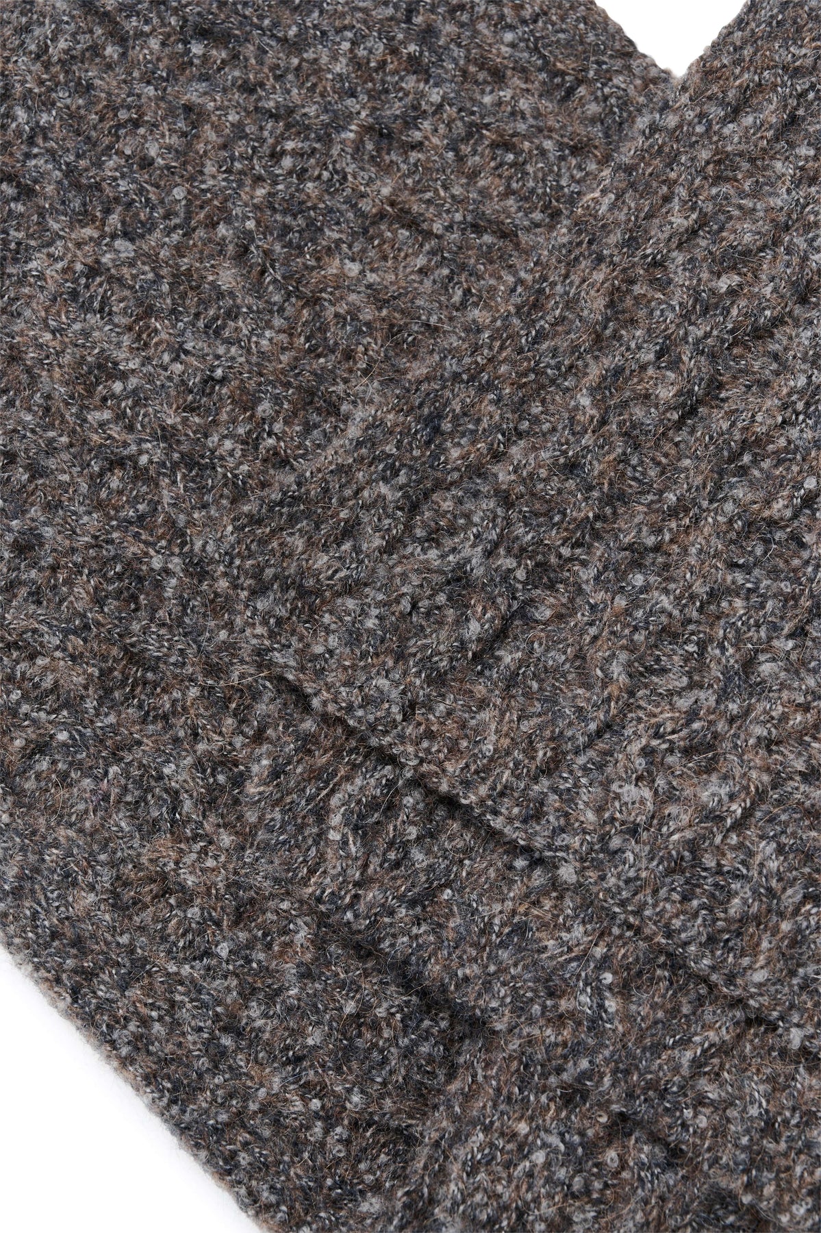 Foulard Graia en maille texturée marron, long et épais, idéal pour l'hiver, offrant confort et chaleur, style moderne et polyvalent.
