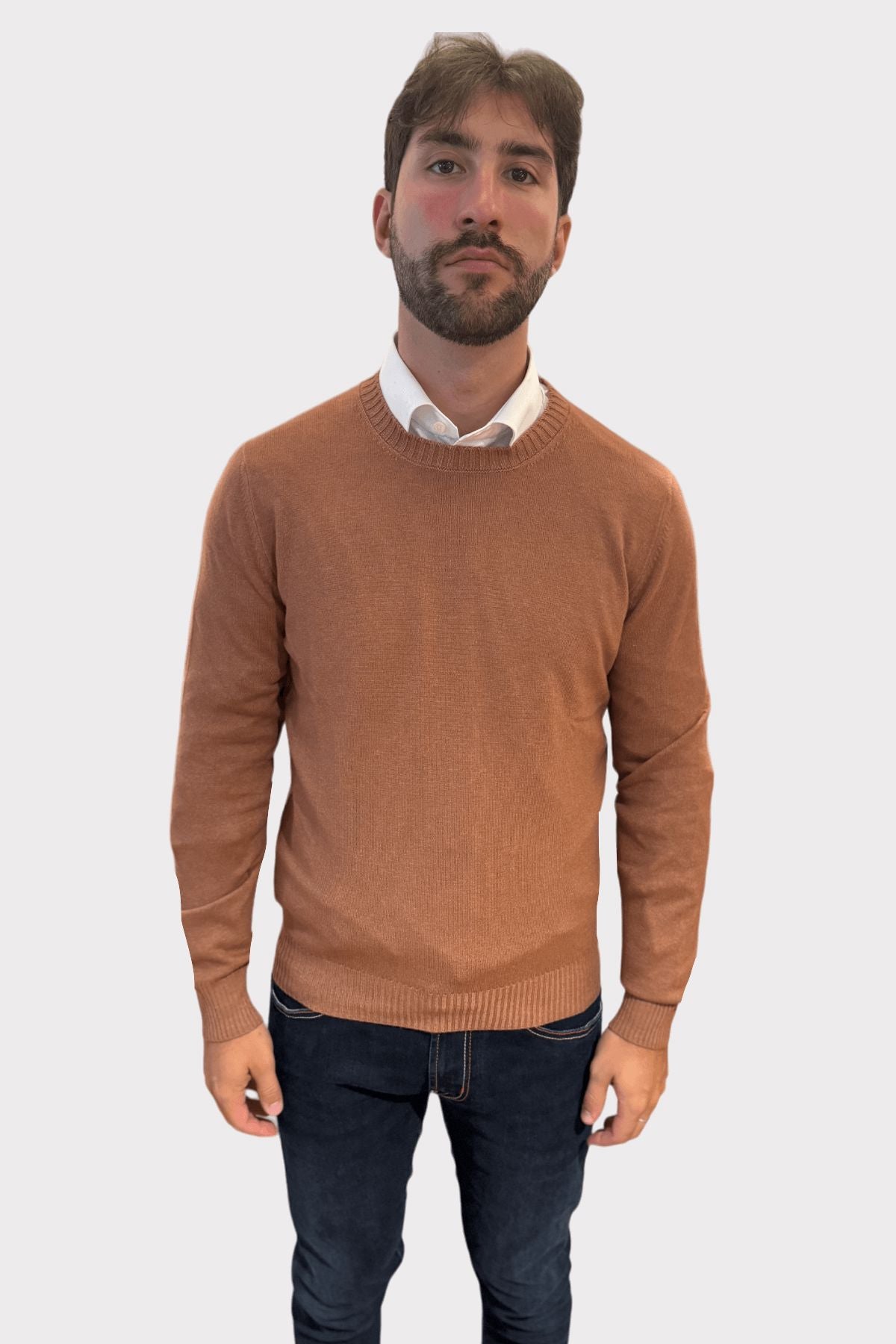 Description : Ce pull en tricot fin couleur orange est un indispensable pour toute garde-robe masculine. Conçu pour offrir un confort optimal et une élégance décontractée, il se porte aussi bien seul qu'au-dessus d'une chemise pour un look raffiné. La coupe classique et le col rond ajoutent une touche intemporelle qui se marie facilement avec divers styles.