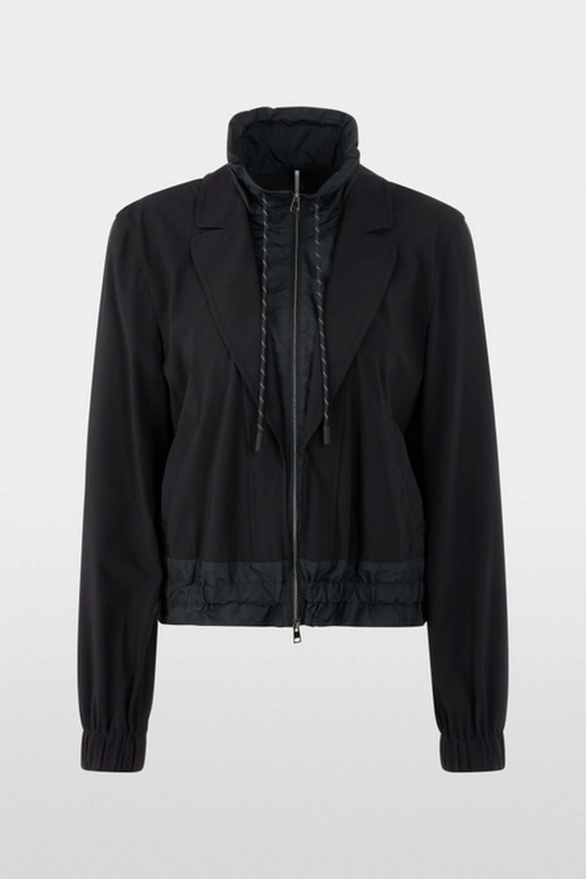 Description : Veste légère et aérée qui allie des éléments sportifs et élégants dans un seul look. Le col à revers rappelle celui d'un blazer, tandis que le reste est dans le style d'un blouson. Cela se voit dans les poignets élastiques, le cordon de serrage au niveau du col et les poches latérales. La veste se ferme à l'aide d'une fermeture éclair. La veste n'est pas doublée. Ce modèle est produit de manière responsable et porte le label de durabilité « Rethink Together ».