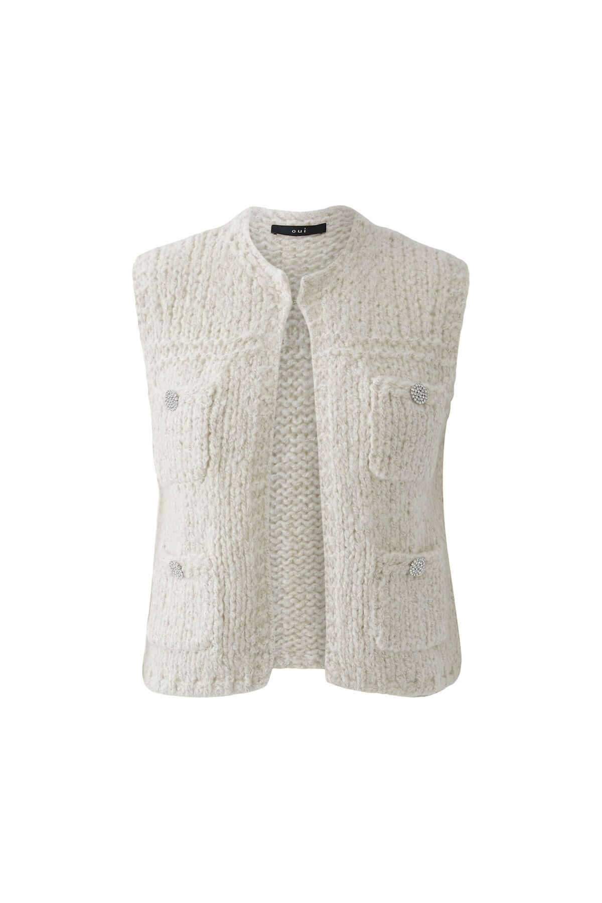 Ce haut sans manches séduit par sa maille douce et légèrement duveteuse, idéale pour apporter une touche de chaleur tout en légèreté. Sa coupe épurée et son encolure ronde en font une pièce polyvalente, parfaite portée seule à la mi-saison ou superposée sur une chemise ou un t-shirt pour un look moderne et raffiné.