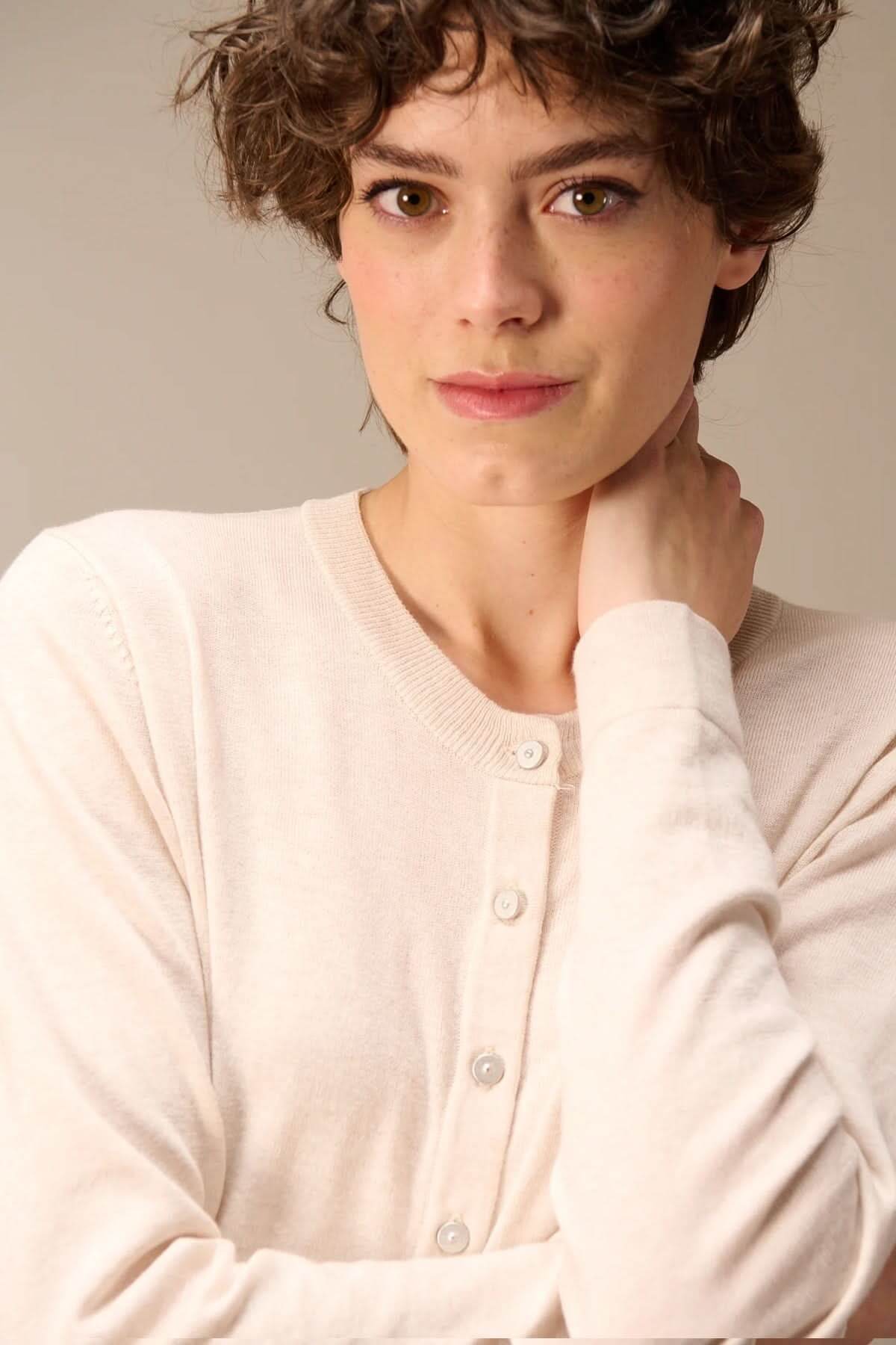 Ce cardigan en tricot fin offre une silhouette élégante et intemporelle parfaite pour le quotidien. Sa coupe ajustée et sa matière douce procurent un confort optimal tout en conservant une allure raffinée. Facile à superposer, il s’adapte aussi bien à une tenue décontractée qu’à un look plus habillé.