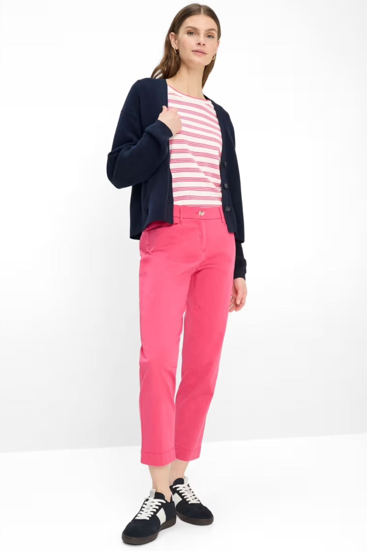 Ce pantalon cheville se distingue par sa coupe ajustée et sa silhouette moderne. Son tissu confortable et légèrement extensible assure une aisance optimale tout au long de la journée. Polyvalent et élégant, il s’agence facilement autant avec des baskets qu’avec des chaussures plus habillées.