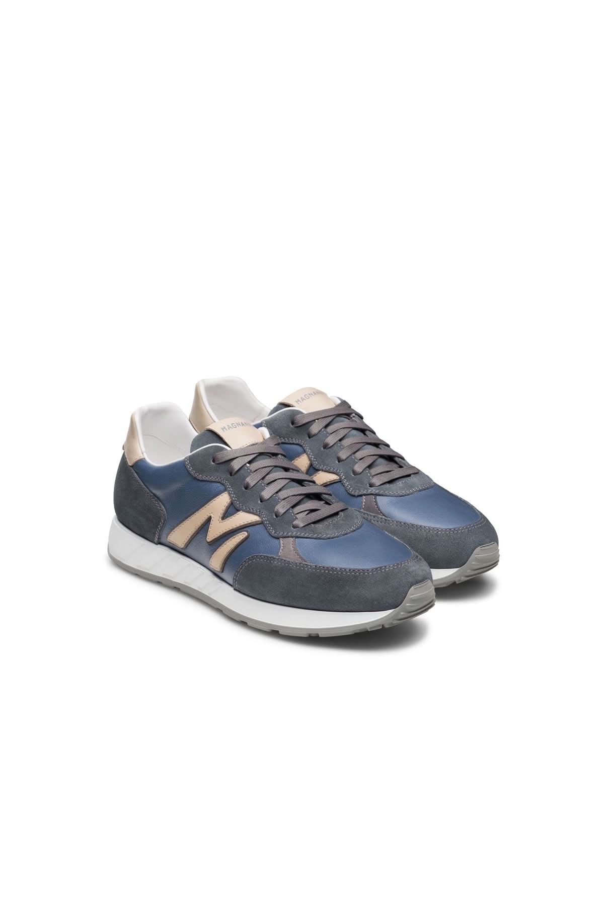 L’espadrille Yoki propose une silhouette rétro inspirée des modèles de course classiques, revisitée avec une touche moderne et raffinée. Confectionnée en Italie à partir d’un mélange de cuir de veau et de suede, elle se distingue par ses détails en cuir formant un “M” signature. Légère, flexible et polyvalente, elle est pensée pour offrir un confort optimal tout au long de la journée.