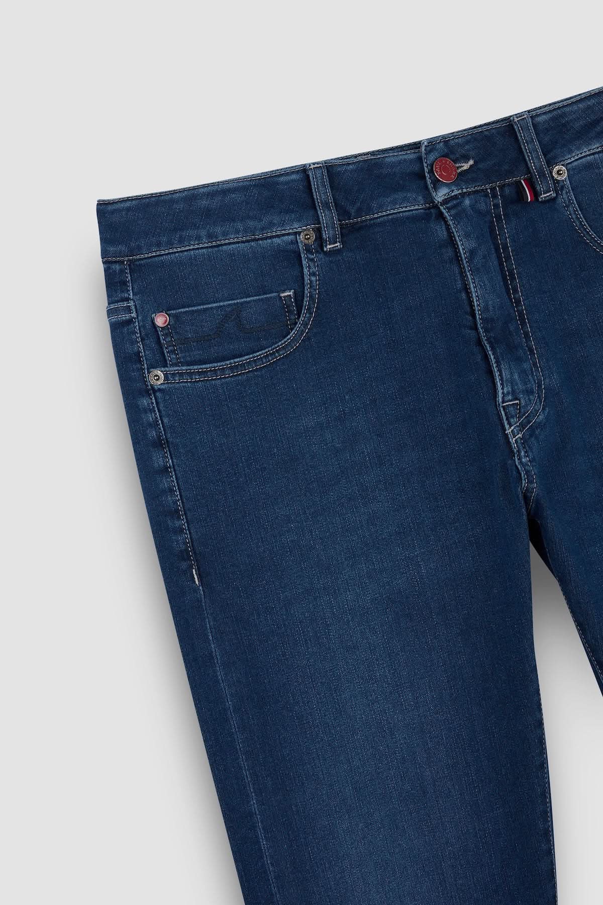 Ce jean offre une silhouette moderne et polyvalente conçue pour le quotidien. Confectionné en denim Red Rivet réalisé en coton de Giza avec une légère extensibilité, il assure confort et liberté de mouvement. Son tissu délavé aux enzymes et ses détails signature lui confèrent une allure soignée et distinctive.
