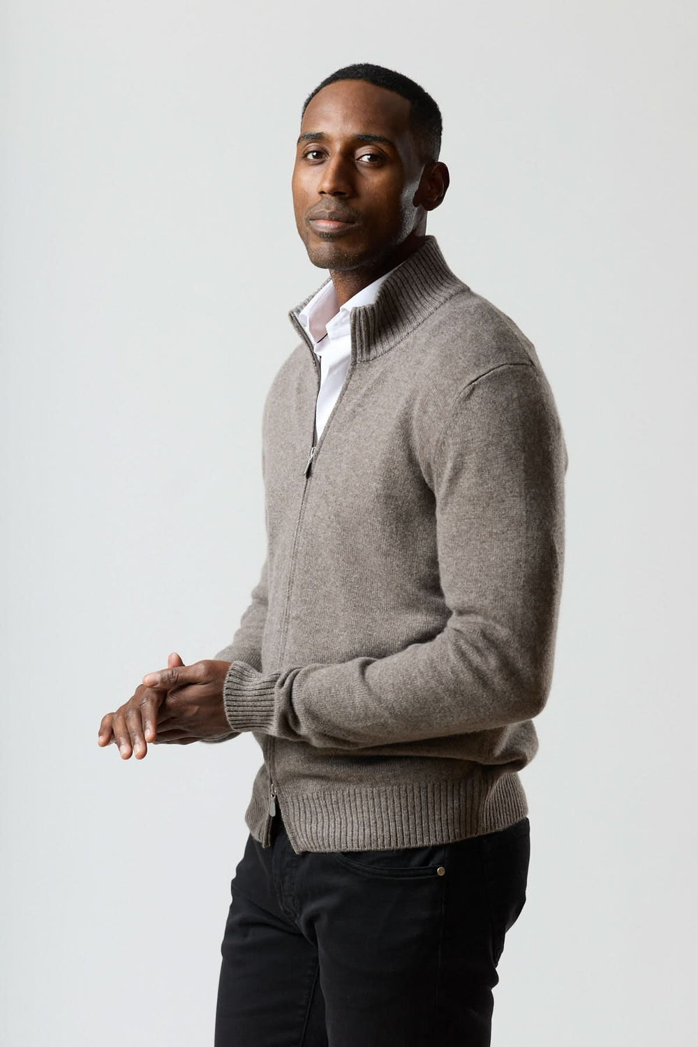 Chandail zippé col montant