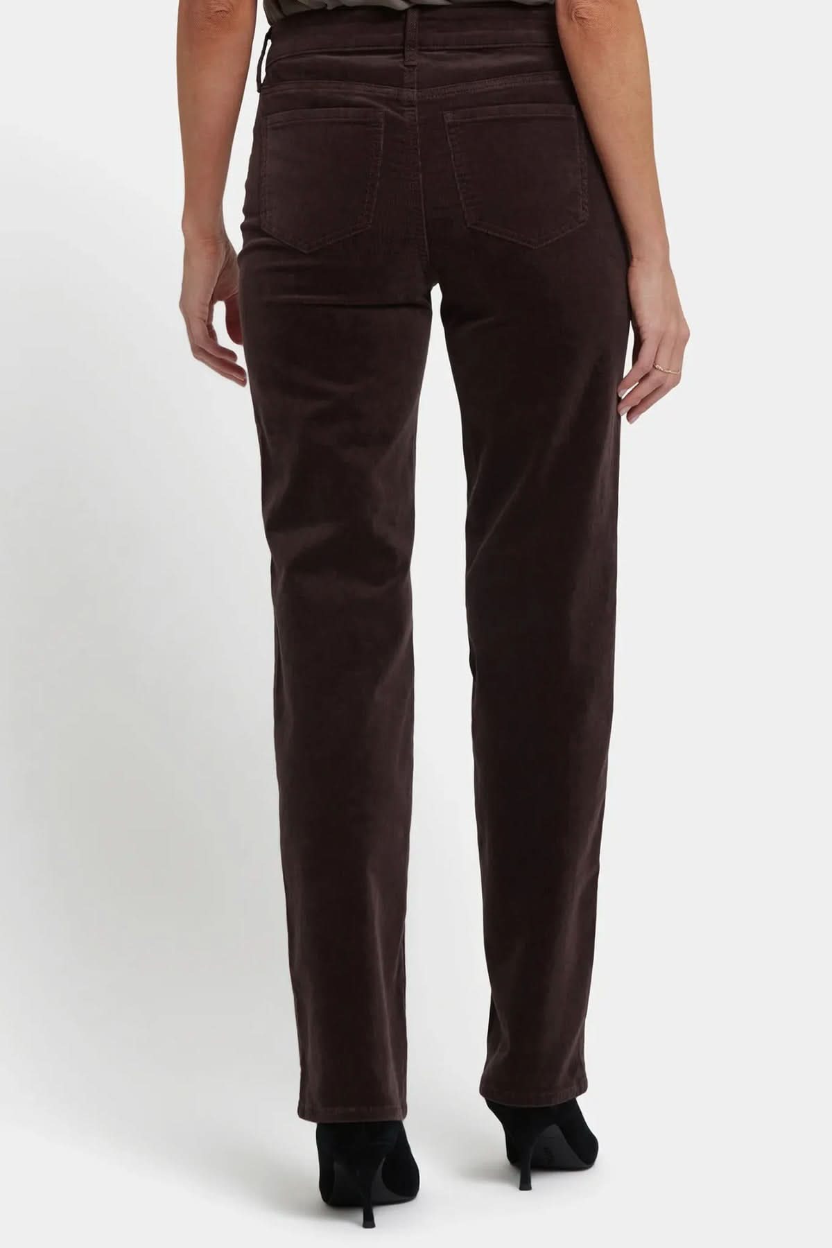 Description: Pantalon 5 poches en velours côtelé fin, coupe droite et taille mi-haute. Le tissu extensible offre confort et maintien tout au long de la journée. Conseil style : associez-le à une blouse fluide ou un chandail en maille pour une allure chic décontractée.