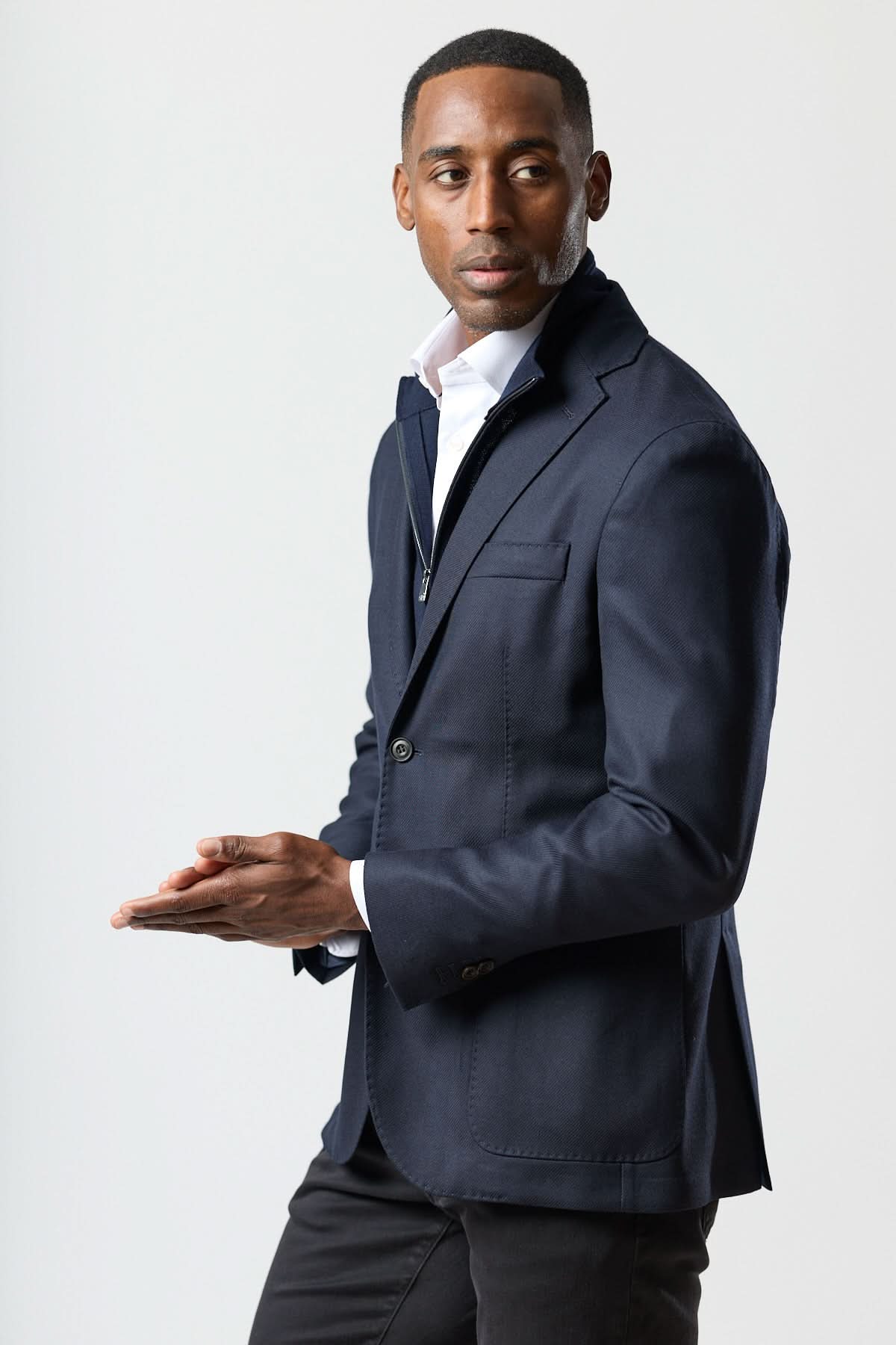 Ce veston Corneliani incarne l’élégance italienne dans sa forme la plus contemporaine. Sa coupe semi-ajustée et sa construction souple assurent un tombé impeccable tout en offrant un confort remarquable. L’insert zippé en tricot apporte une touche moderne et décontractée, idéale pour un look raffiné au bureau ou lors des sorties urbaines.