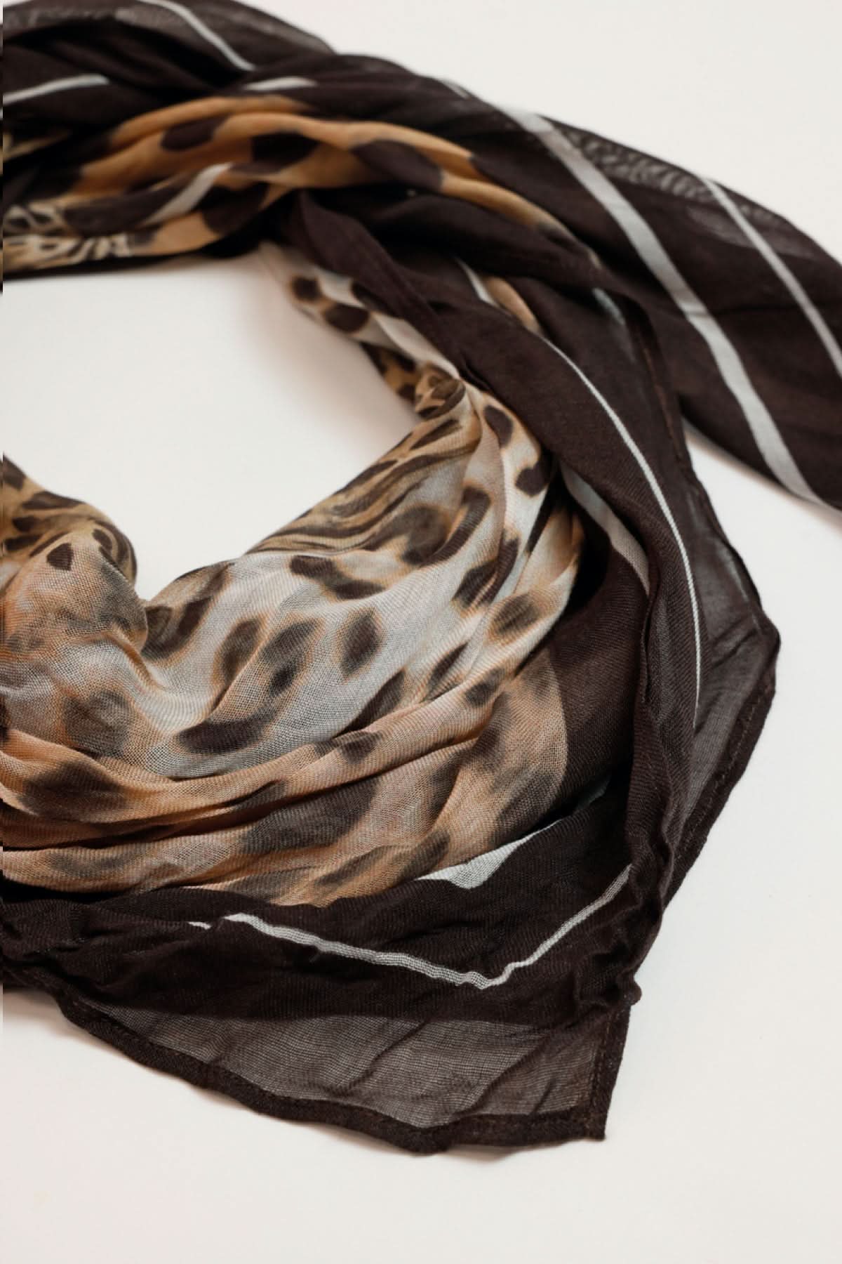 Foulard imprimé léopard artistique avec illustration félin, motifs ton sur ton, apportant profondeur et caractère sophistiqué.