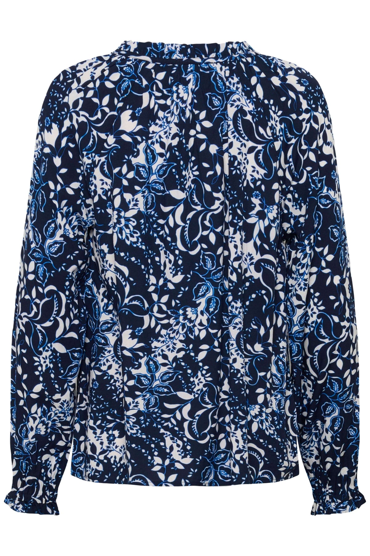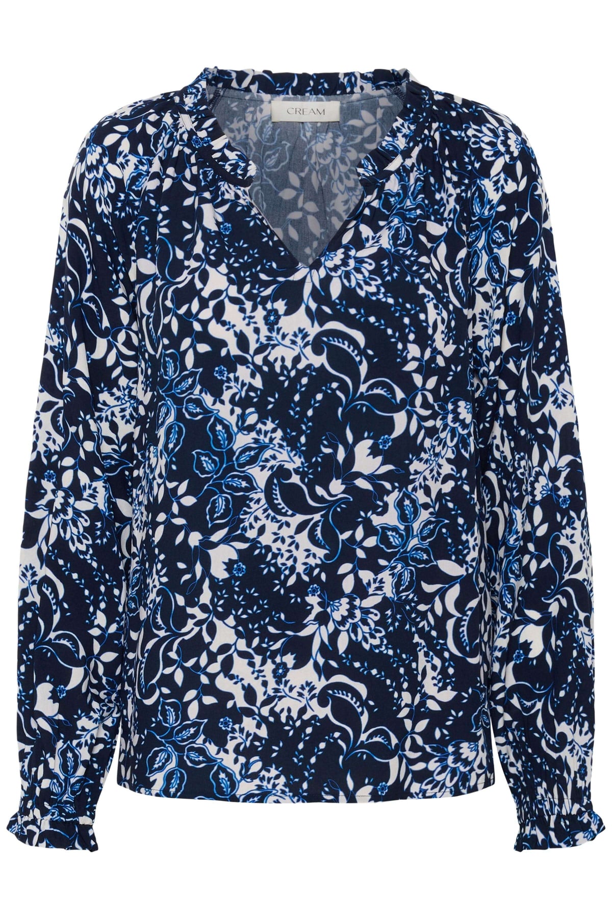 This blouse offers a flowing, feminine silhouette that is perfect for everyday elegance. Its slightly gathered V-neck adds a delicate, refined touch. The lightweight fabric and floral print create a modern look that is easy to style.