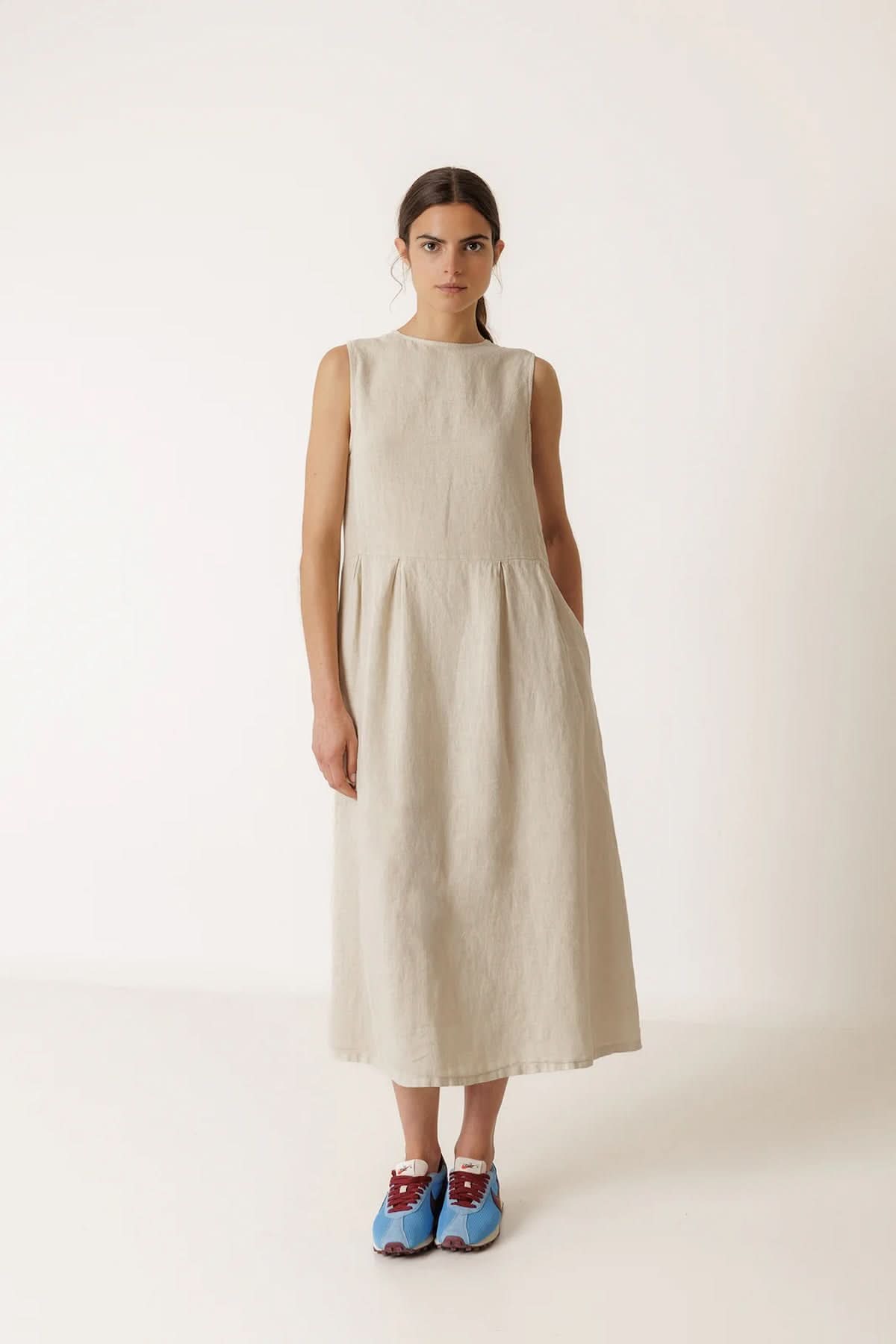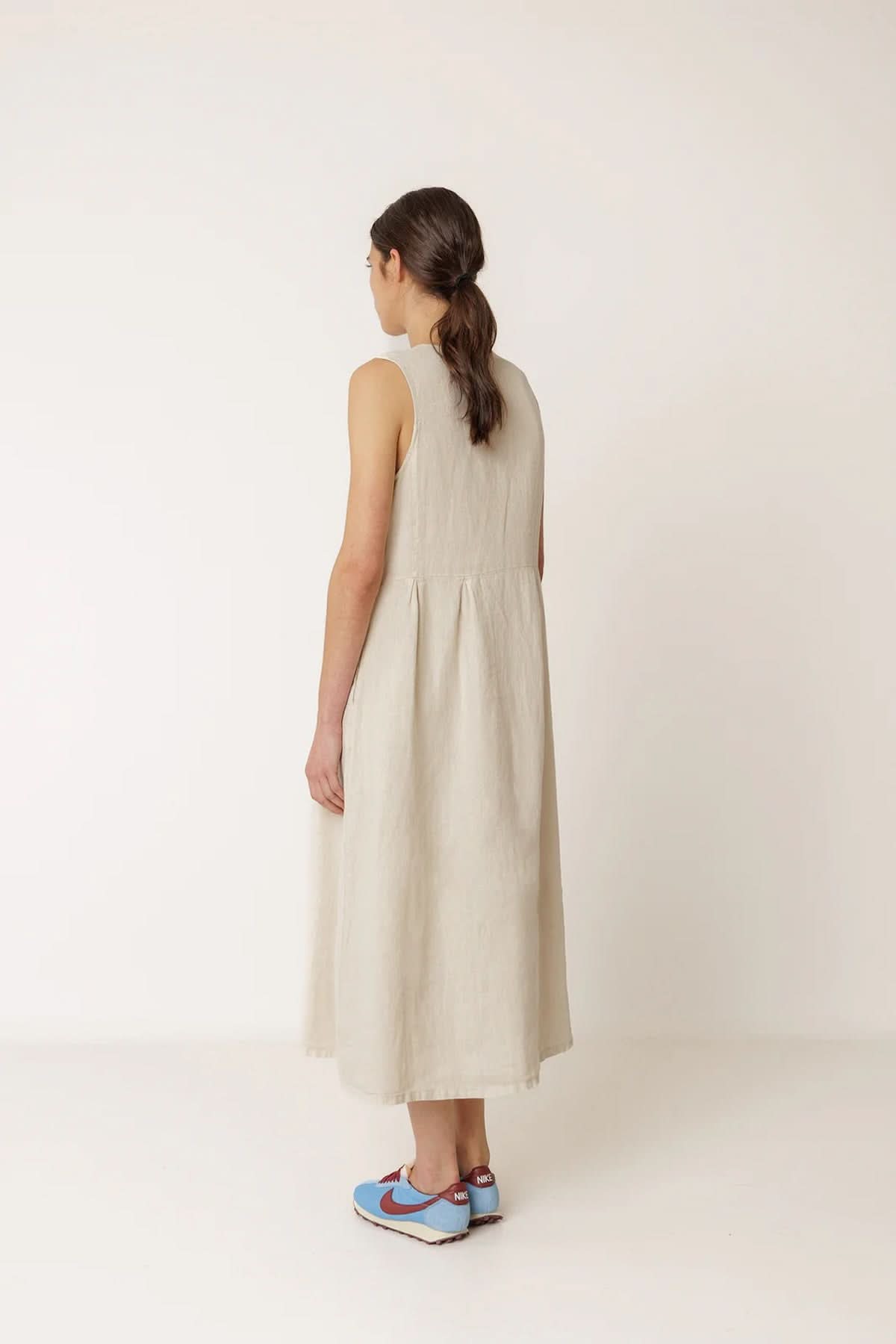 This reversible midi dress offers two styles in one thanks to its versatile design. Its flowing, minimalist cut ensures optimal comfort while creating an elegant silhouette. Easy to wear, it works just as well with a casual look as it does with a more polished outfit.