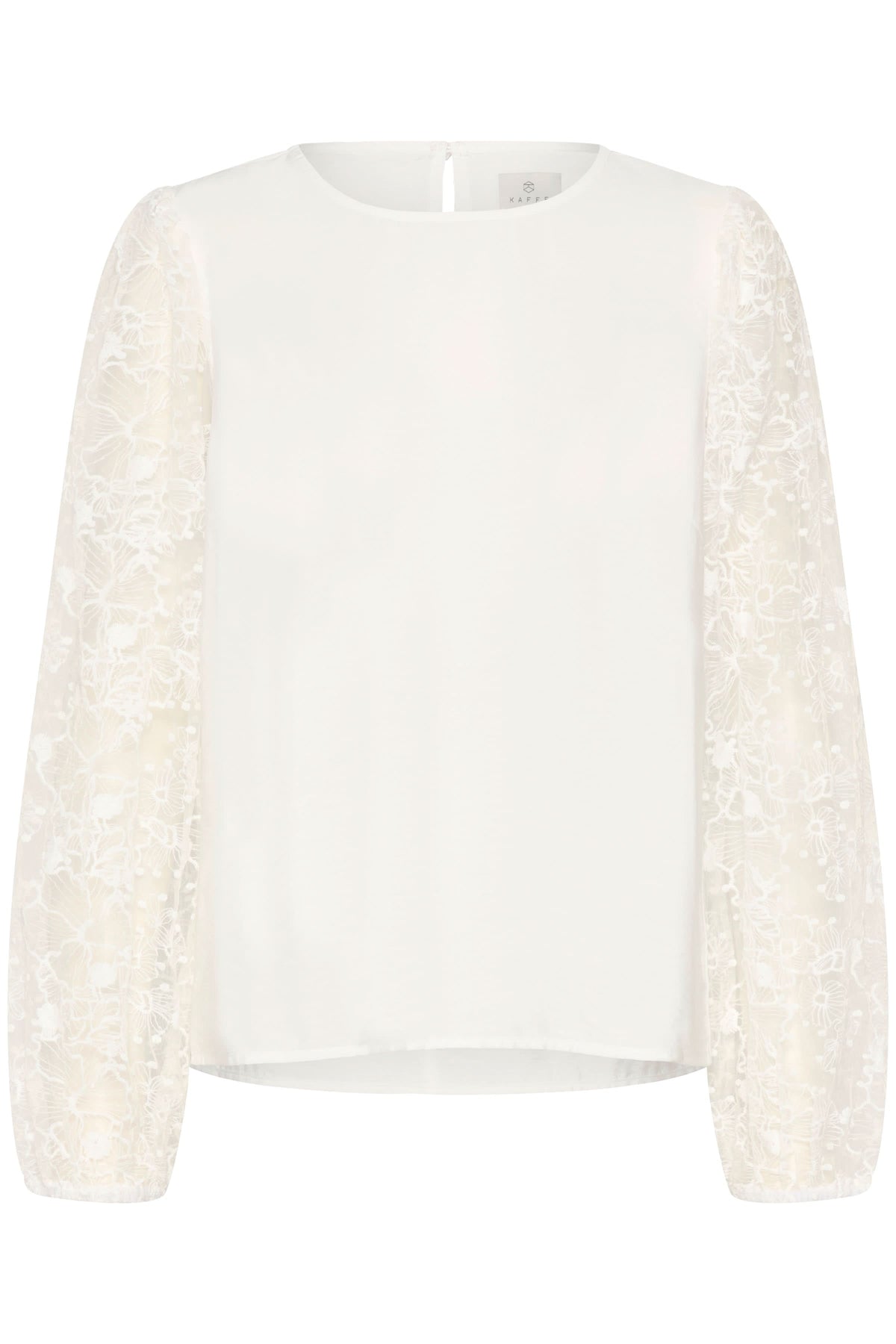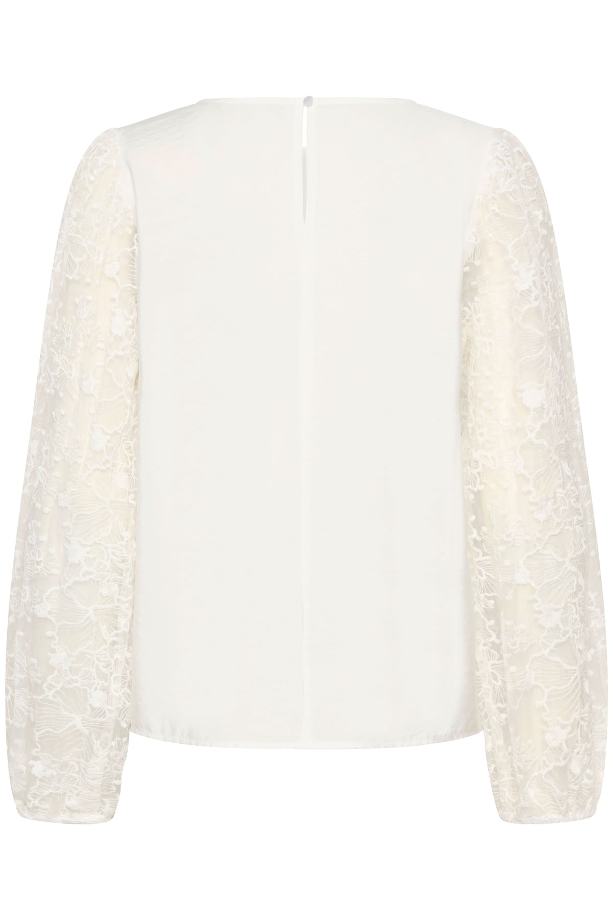 This top offers an elegant and feminine silhouette, ideal for sophisticated everyday wear. The long lace sleeves add a delicate and sophisticated touch while allowing the silhouette to breathe. Easy to coordinate, it can be worn with dress pants or denim for a polished look.
