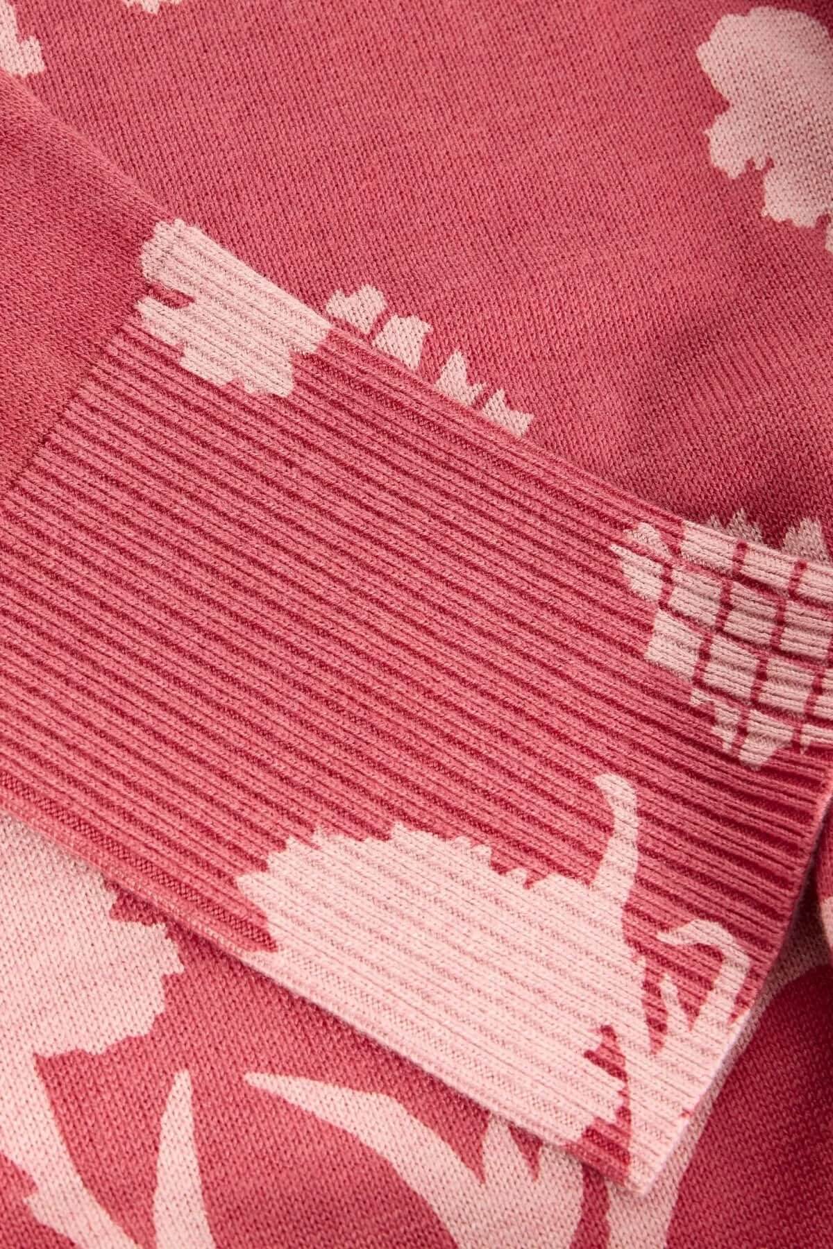 Chandail imprimé à manches longues Olive avec maille douce et imprimé graphique rose, idéal pour un style décontracté féminin.