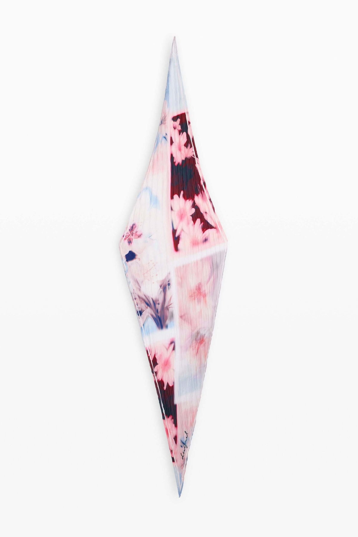 This diamond-shaped scarf adds an artistic and refined touch to any outfit. Its lightweight, flowing fabric means it can be worn in a variety of ways: around the neck, in the hair, or tied to a bag. Versatile and elegant, it easily complements both everyday outfits and more formal looks.