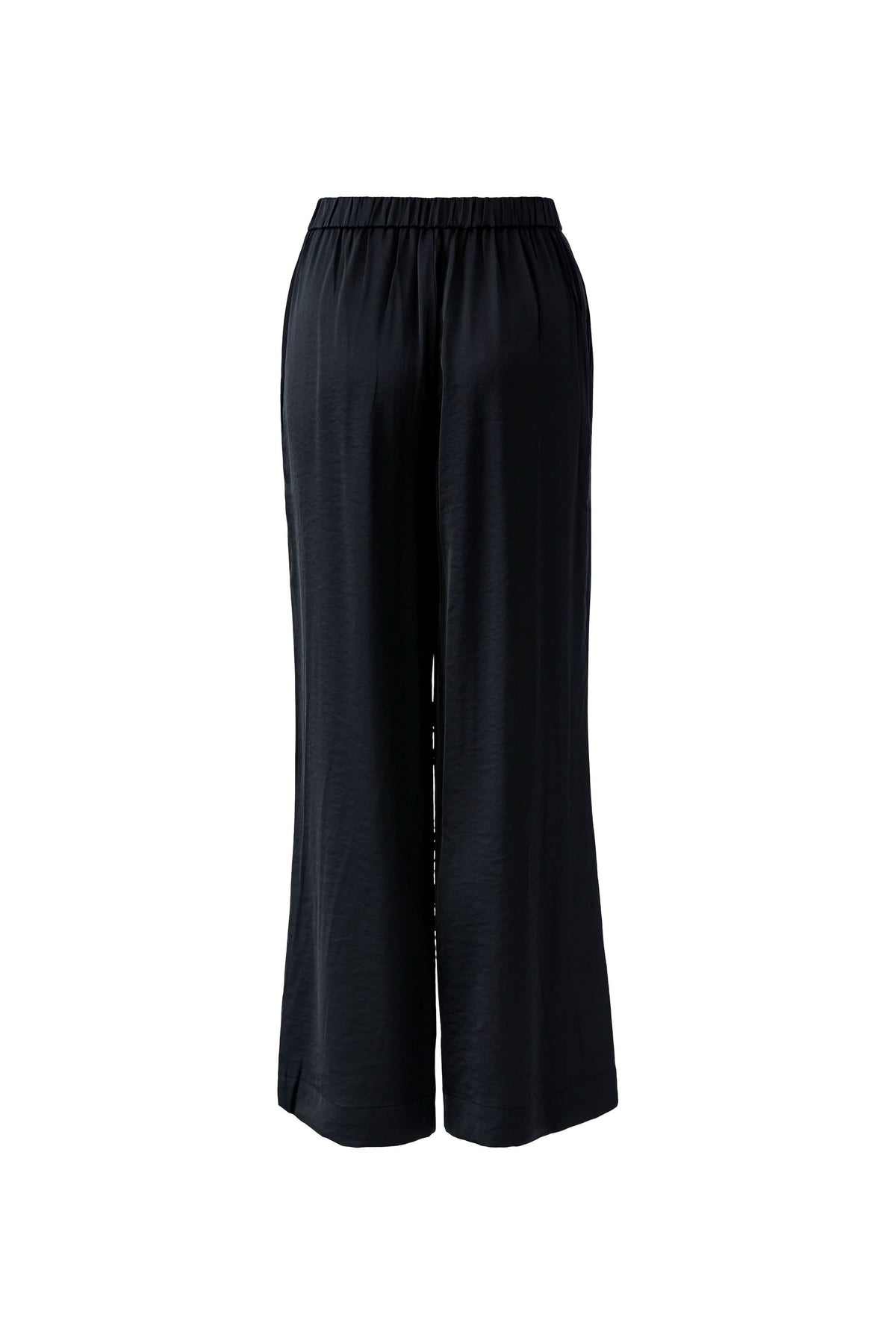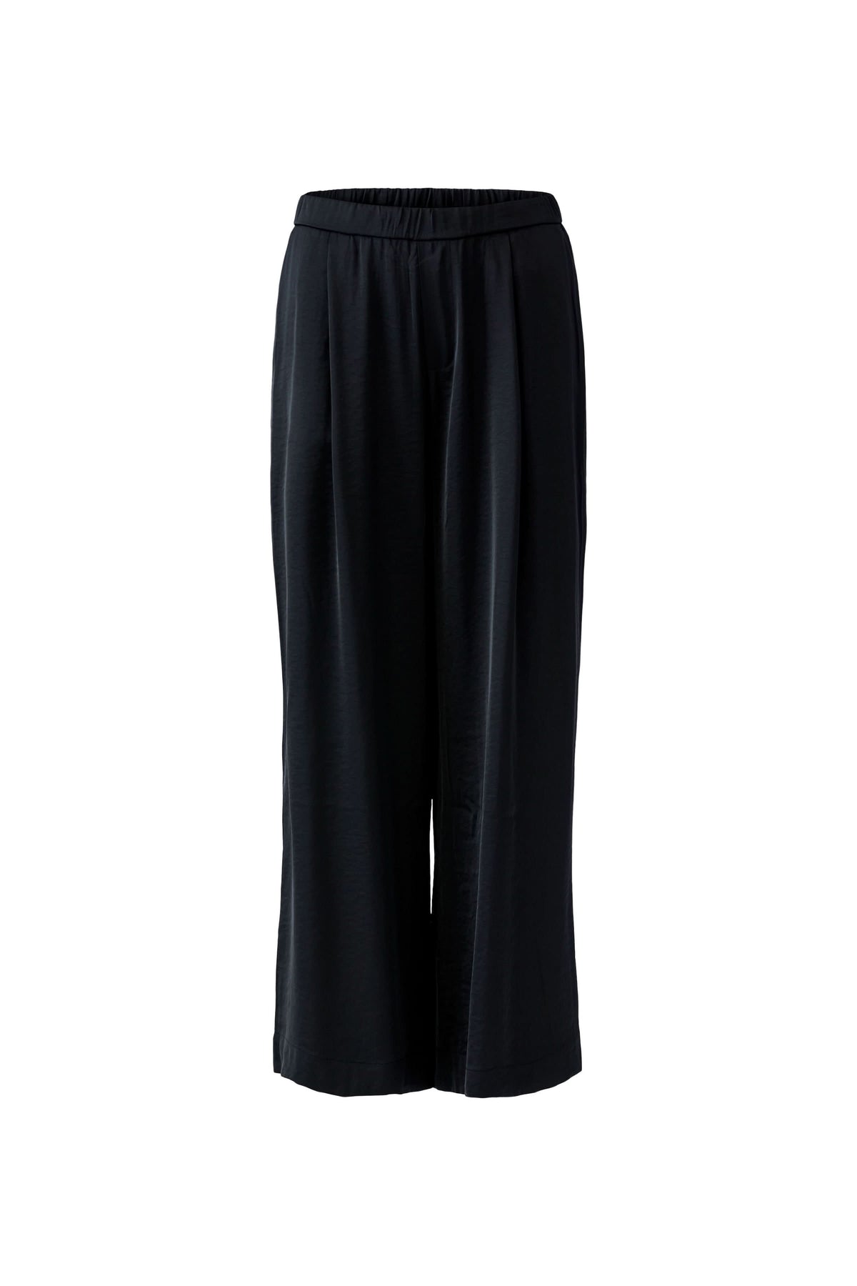These flowing wide-leg pants offer an elegant and comfortable silhouette, ideal for everyday wear or more formal occasions. Their elastic waistband ensures a flexible fit, while the flowing drape elongates the line and adds a modern look. Easy to coordinate, they fit naturally into a versatile wardrobe.