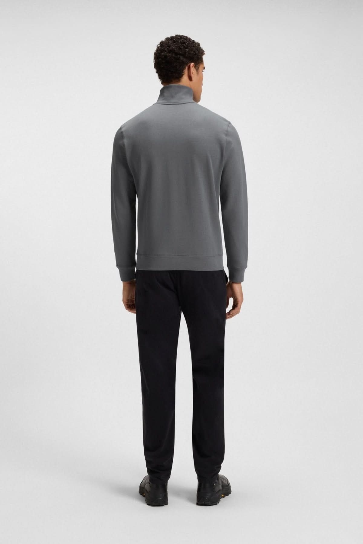 Description: This BOSS sweater combines comfort and style with its soft terry cotton construction. Its half-zip stand-up collar adds a modern and practical touch, ideal for layering your outfits. Perfect for a casual yet refined everyday look.