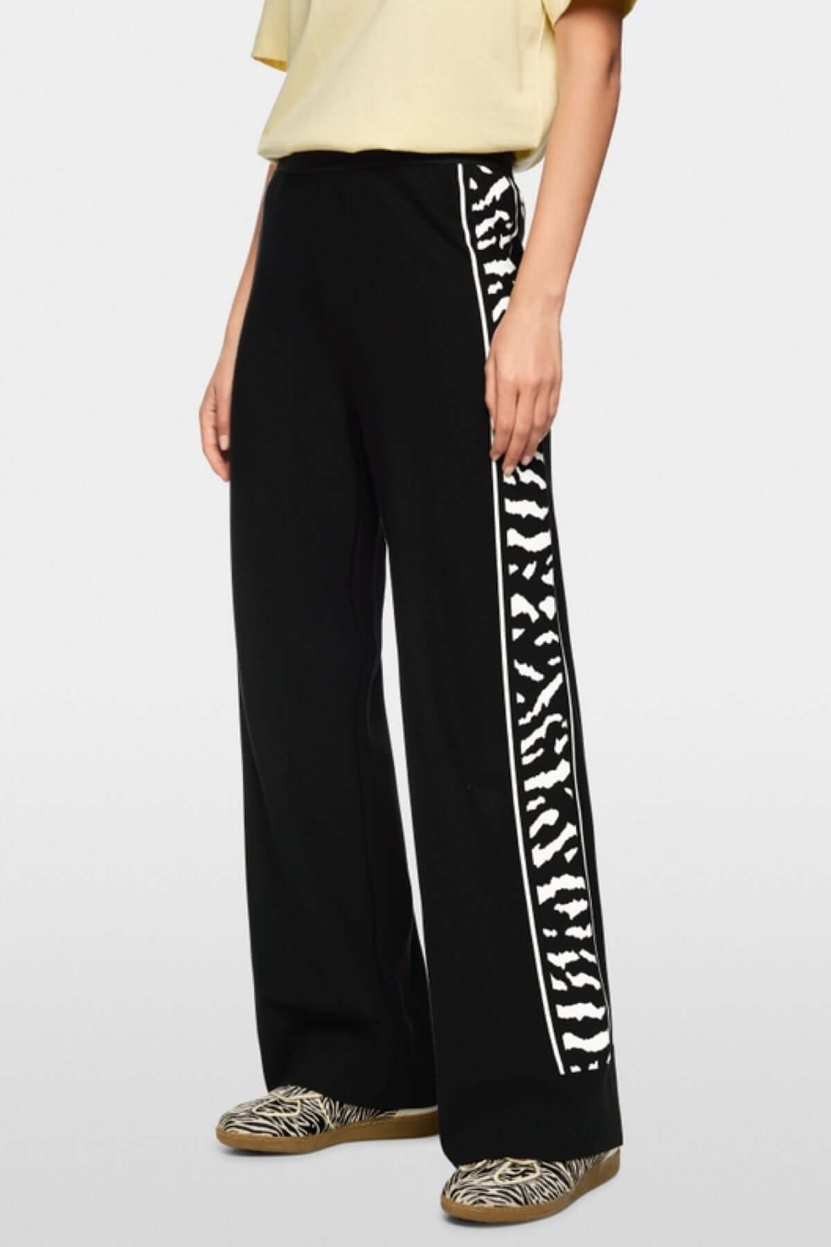 Pantalon WELKOM avec bande latérale imprimé animalier et bord-côtes, confort optimal et style durable.