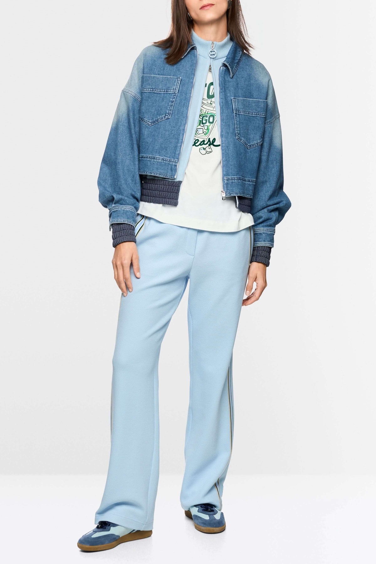 This denim jacket revisits a classic with a contemporary twist. Its slightly loose fit and full-length zipper create a modern, structured silhouette. The patch pockets on the front reinforce its utilitarian style, while the soft denim ensures optimal comfort for everyday wear.