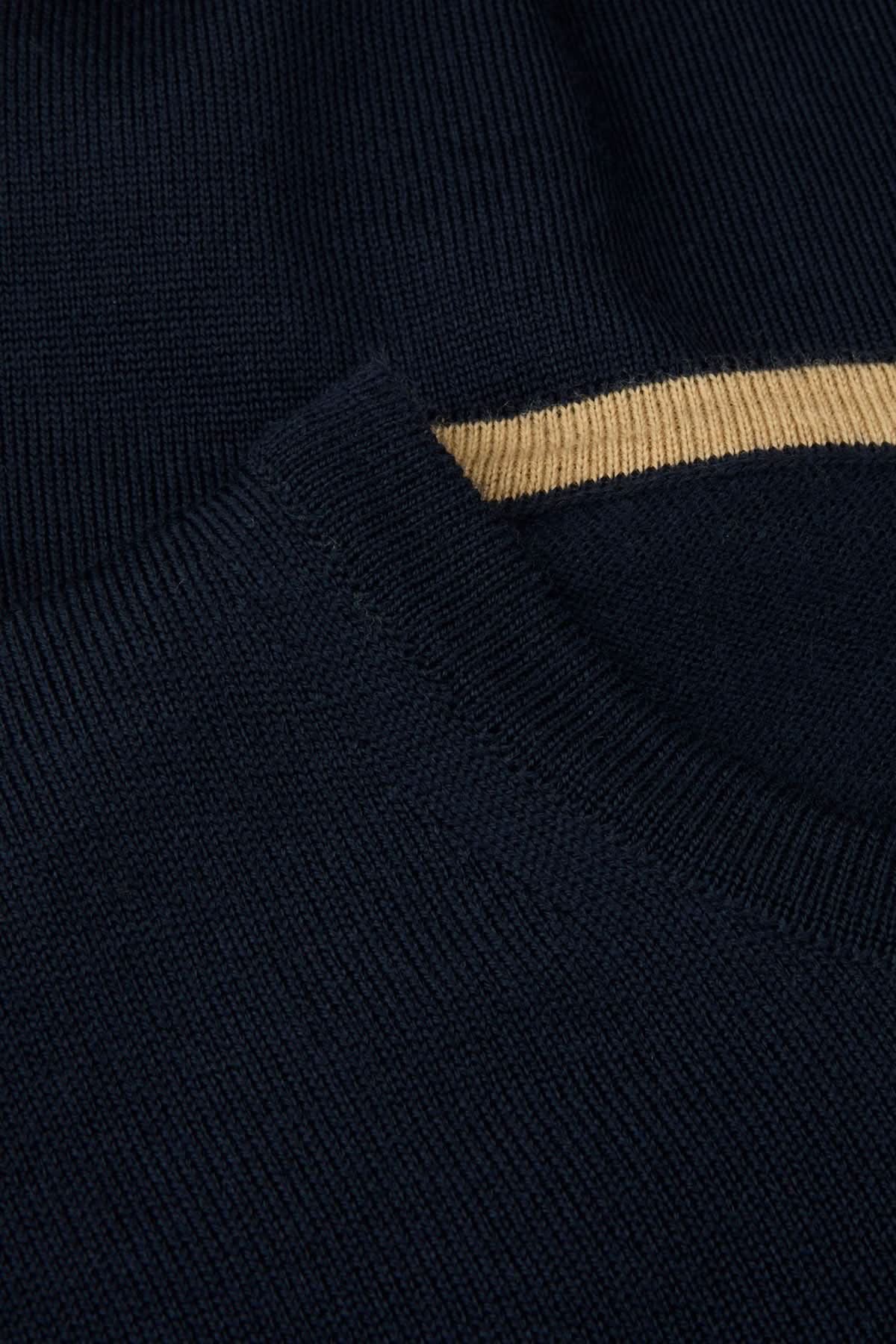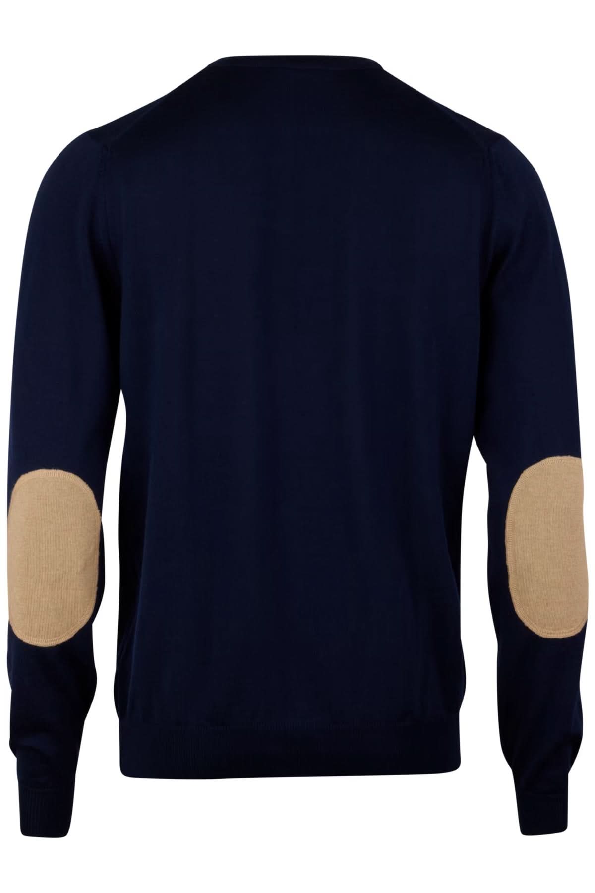 Description: This merino wool sweater combines elegance and comfort thanks to its fine, breathable knit. It is enhanced with discreet elbow patches and ribbed detailing at the collar, cuffs, and hem. Style tip: Wear it over a Slimline shirt for a refined look or on its own for a casual chic vibe.