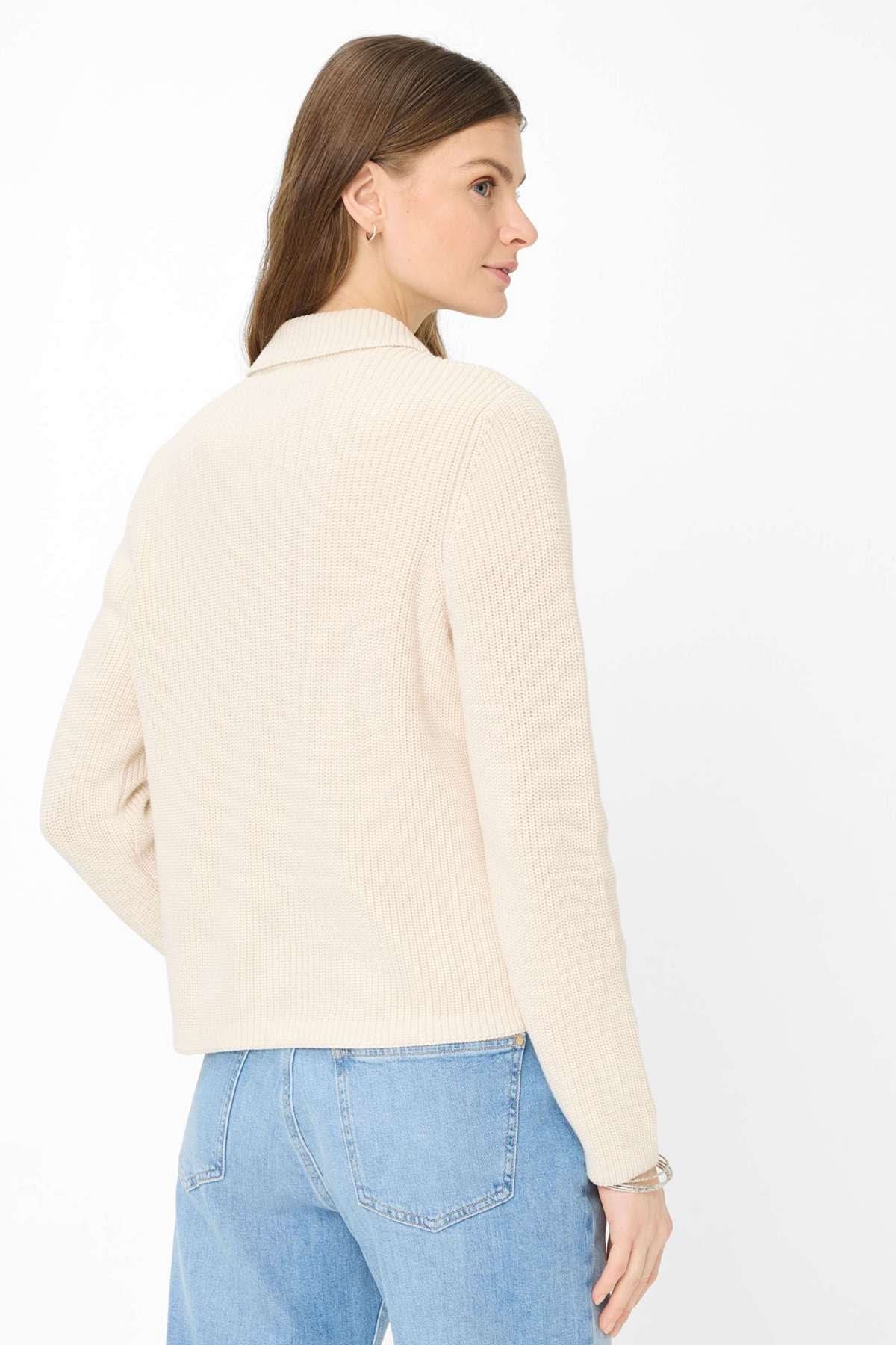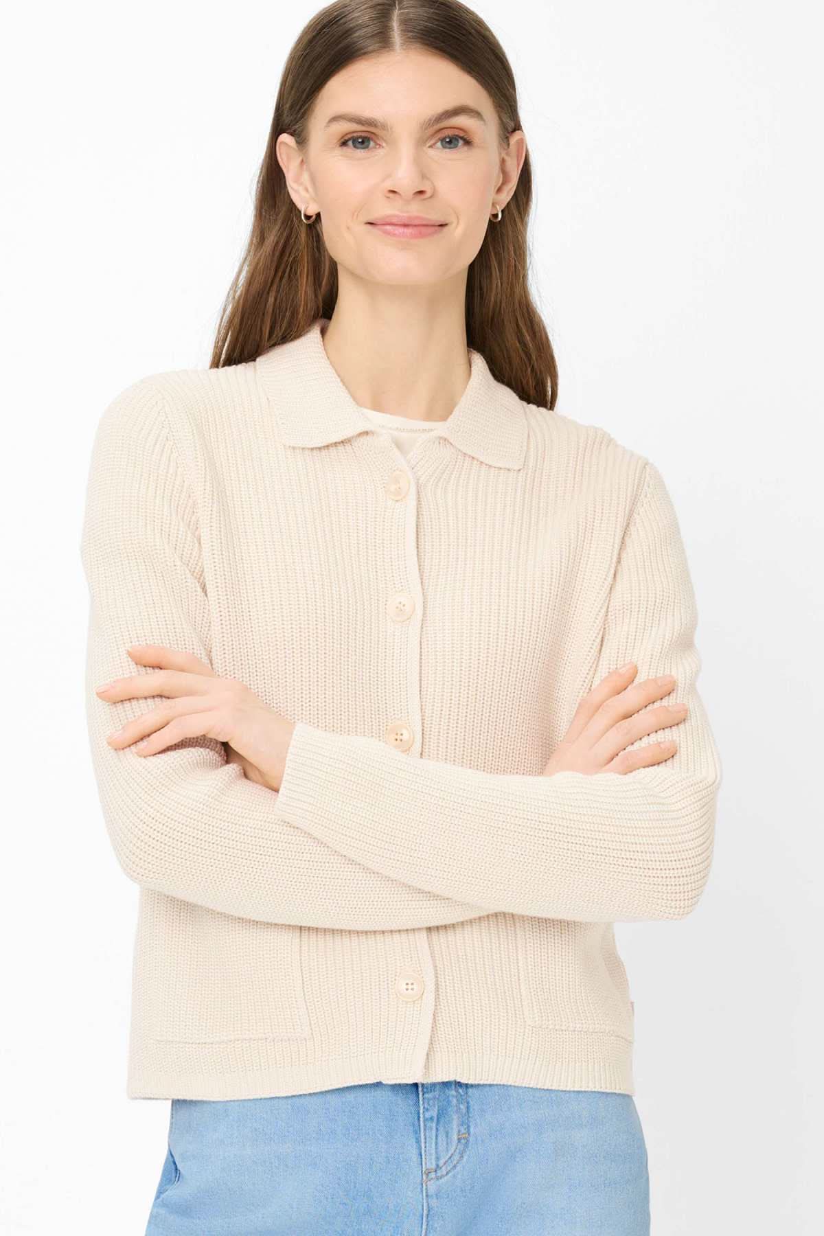 Description: Structured knit cardigan with a sleek, timeless style. Its straight cut and shirt collar add a polished touch while maintaining absolute comfort. Perfect for layering over a T-shirt or blouse, it works just as well with casual looks as it does with more formal outfits.