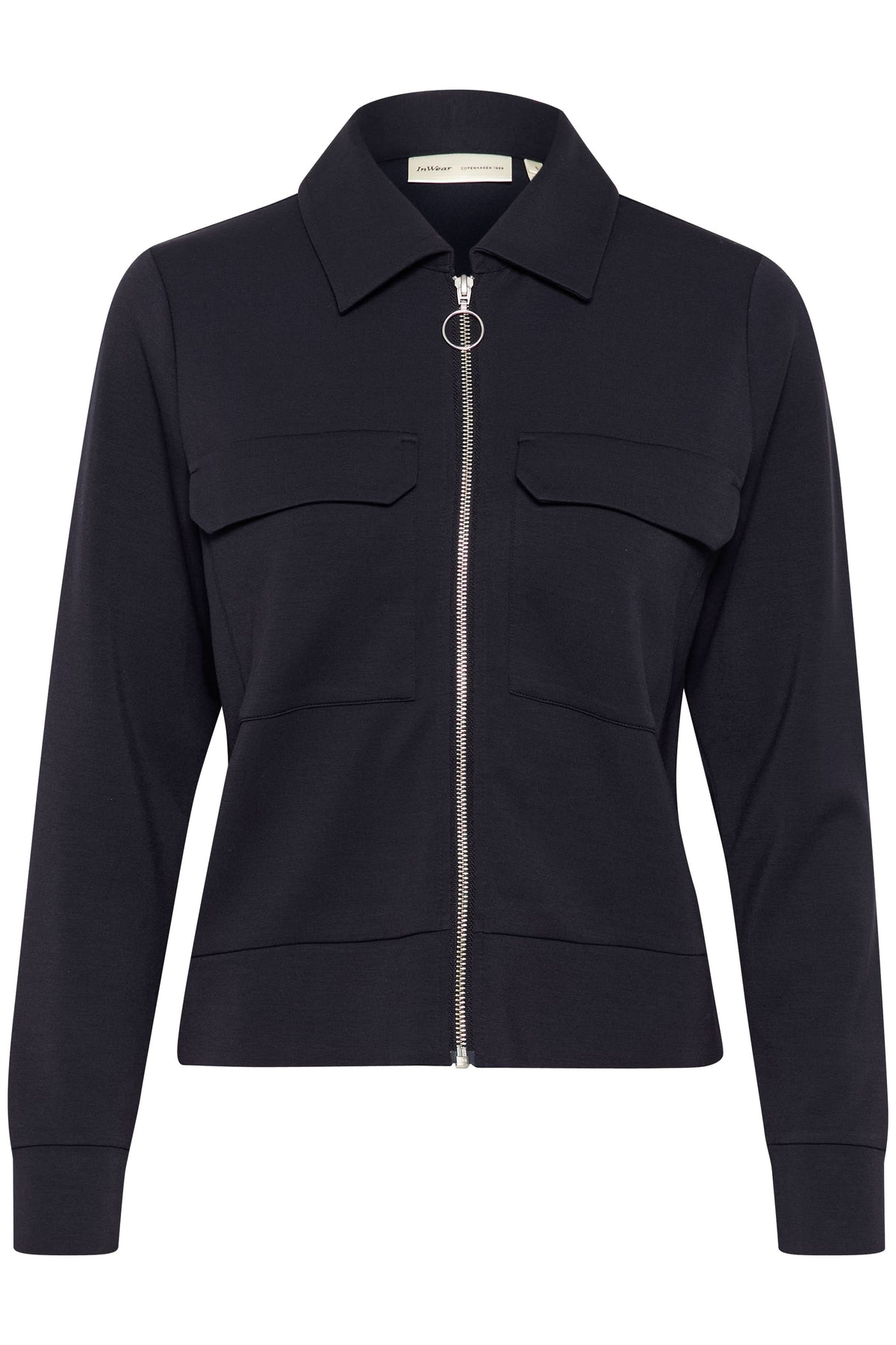 Veste Beca en tissu navy avec fermeture éclair et poches poitrine, idéale pour un look chic et pratique.