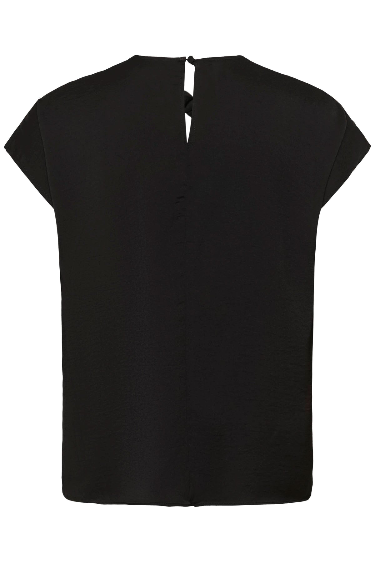 Description: Lightweight blouse with a flowing drape, featuring an original bow-effect collar and a small V-neckline. Its short sleeves and relaxed fit make it an elegant and comfortable piece for everyday wear. Style tip: wear it tucked into tailored pants or a pencil skirt for a chic and modern look.