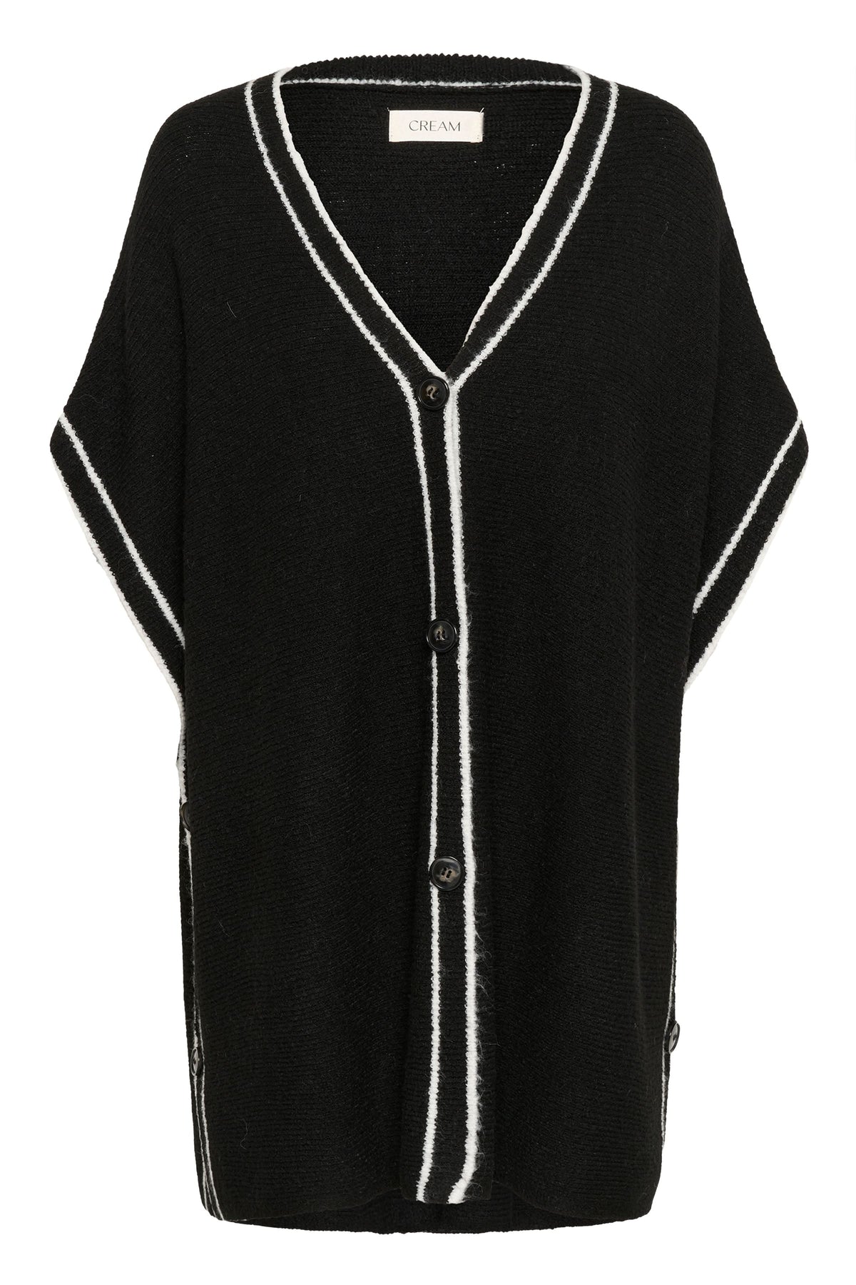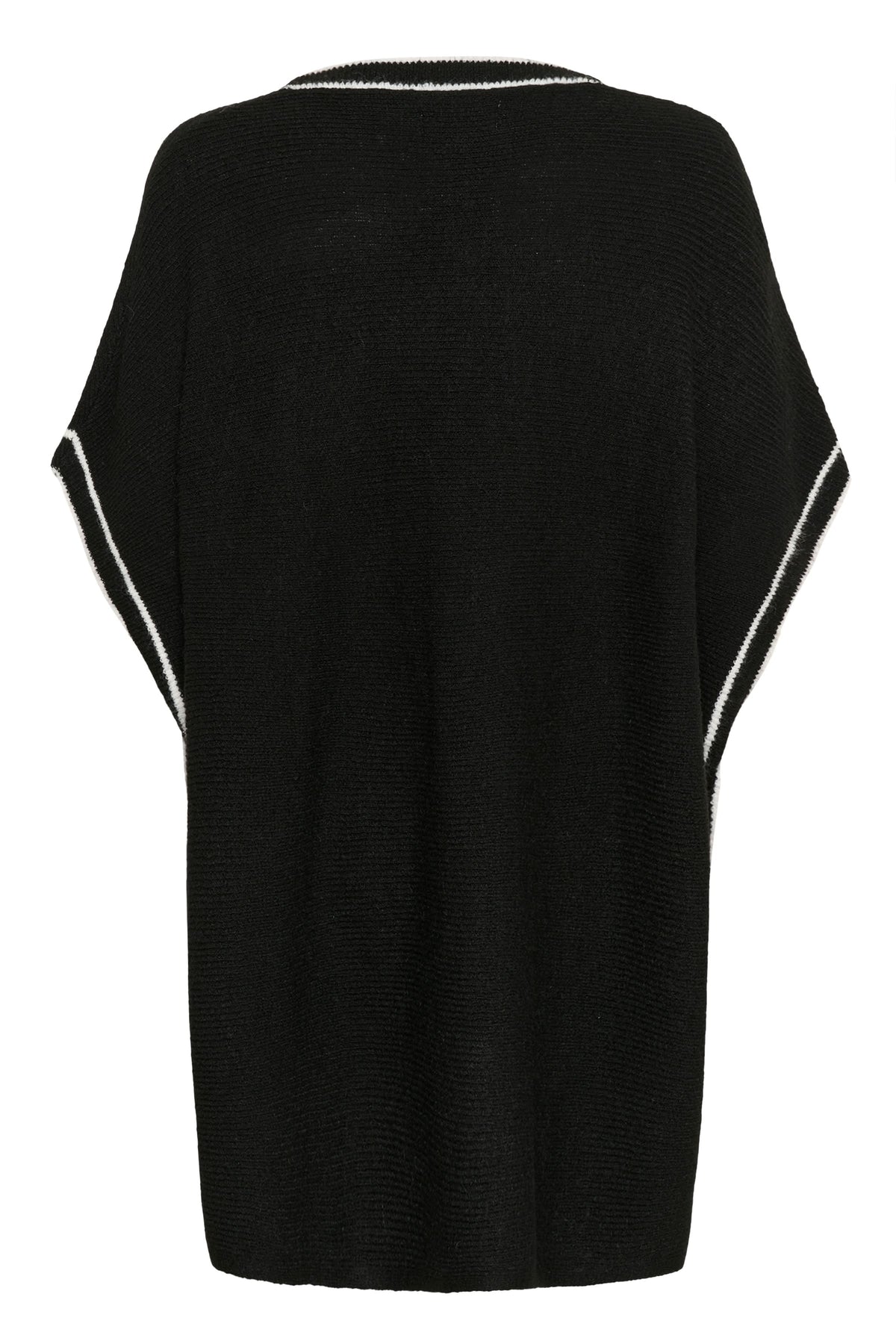 Description: Elegant and comfortable, this knitted cape charms with its Fit and contrasting details. Featuring a button closure at the front and a V-neckline, it offers a style that is both chic and casual. Perfect for layering over a shirt or turtleneck, it adds a modern and refined touch to your seasonal outfits.