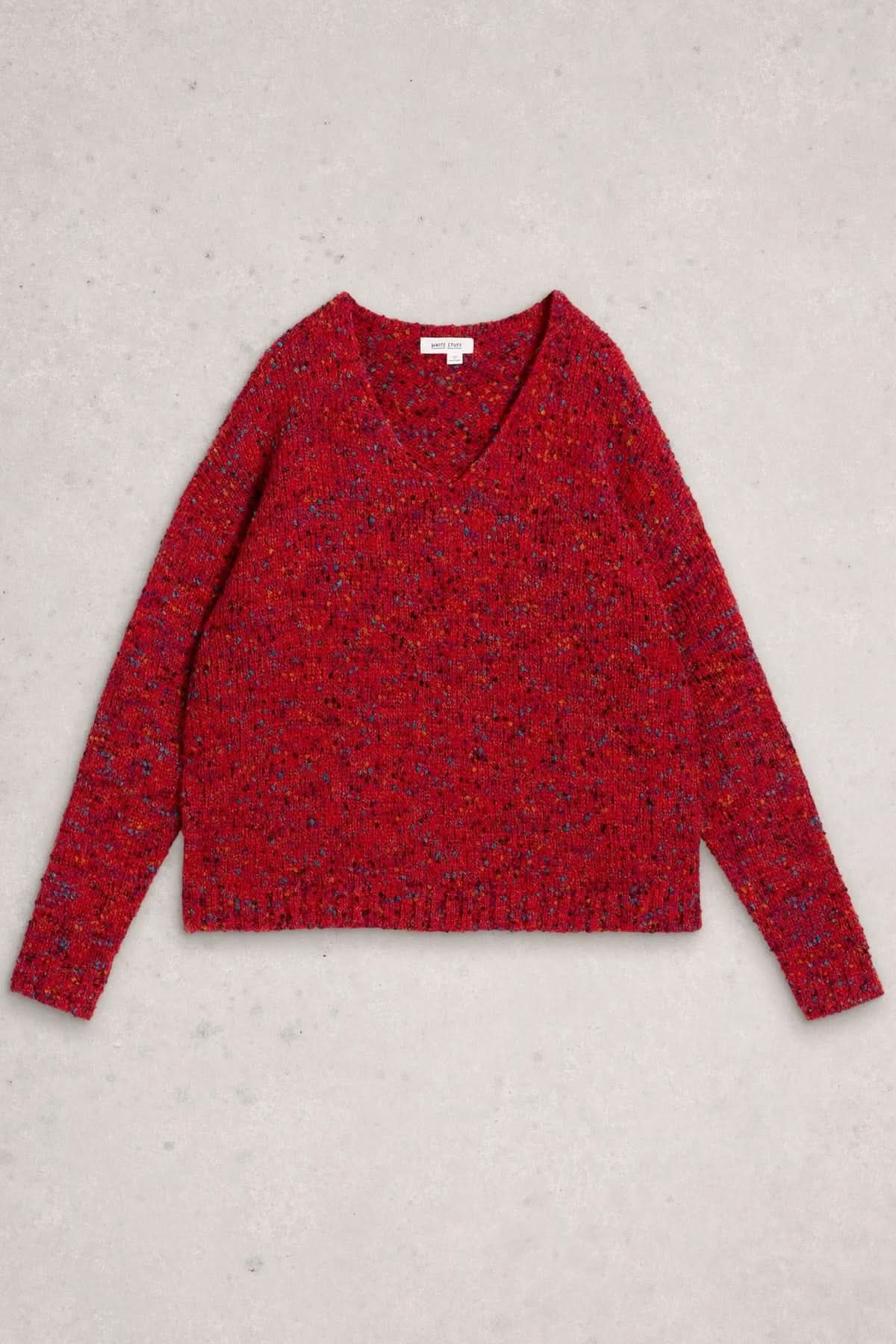 Description: This V-neck knit sweater offers a comfortable and modern style. Its heathered texture and relaxed fit make it the perfect piece to elevate your everyday looks with a touch of warmth and character. Style tip: wear it over a patterned shirt or plain T-shirt for a trendy layered look.