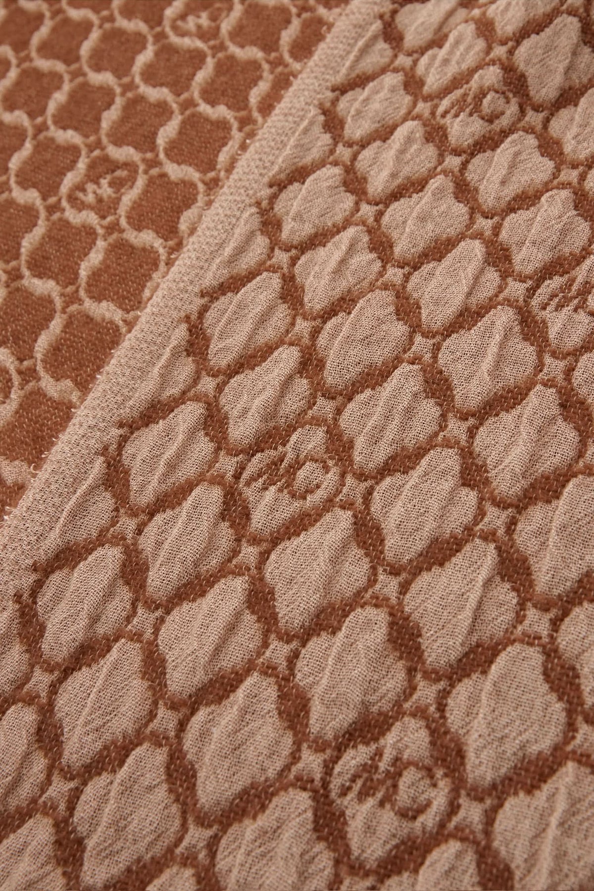 Tissu en laine double face bicolore avec motif textured, couleur beige et marron.