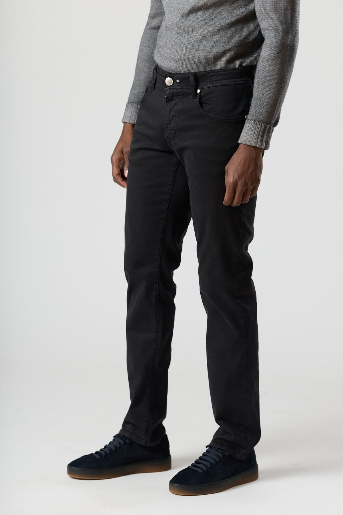 Description: These black jeans offer a soft feel and high stretch for all-day comfort. The modern Fit elongates the silhouette while remaining clean and versatile. Style tip: Pair with a white shirt and clean sneakers for a polished urban look.