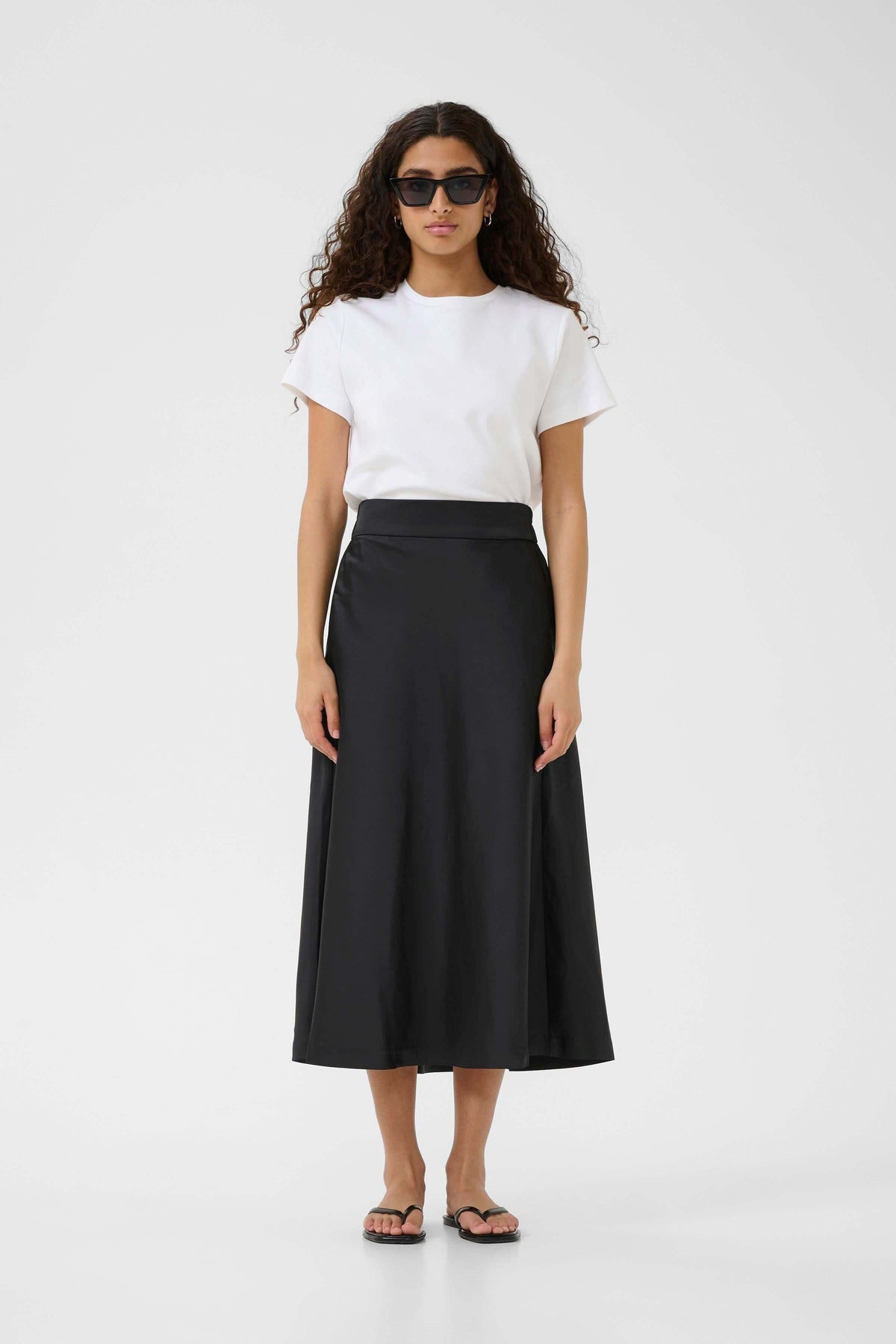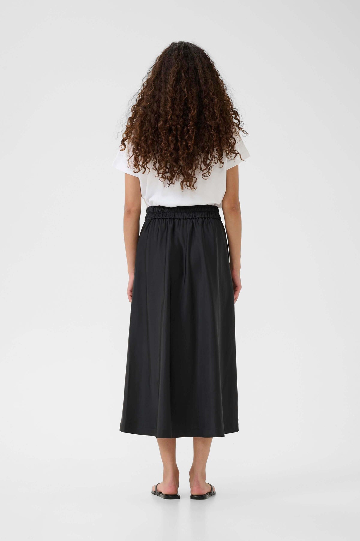 Description: This flowing midi skirt with an elegant drape captivates with its refined simplicity. Its defined size and flared fit flatter the figure while offering optimal comfort. Style tip: wear it with a basic T-shirt for a minimalist look or a sophisticated blouse for a more dressed-up look.