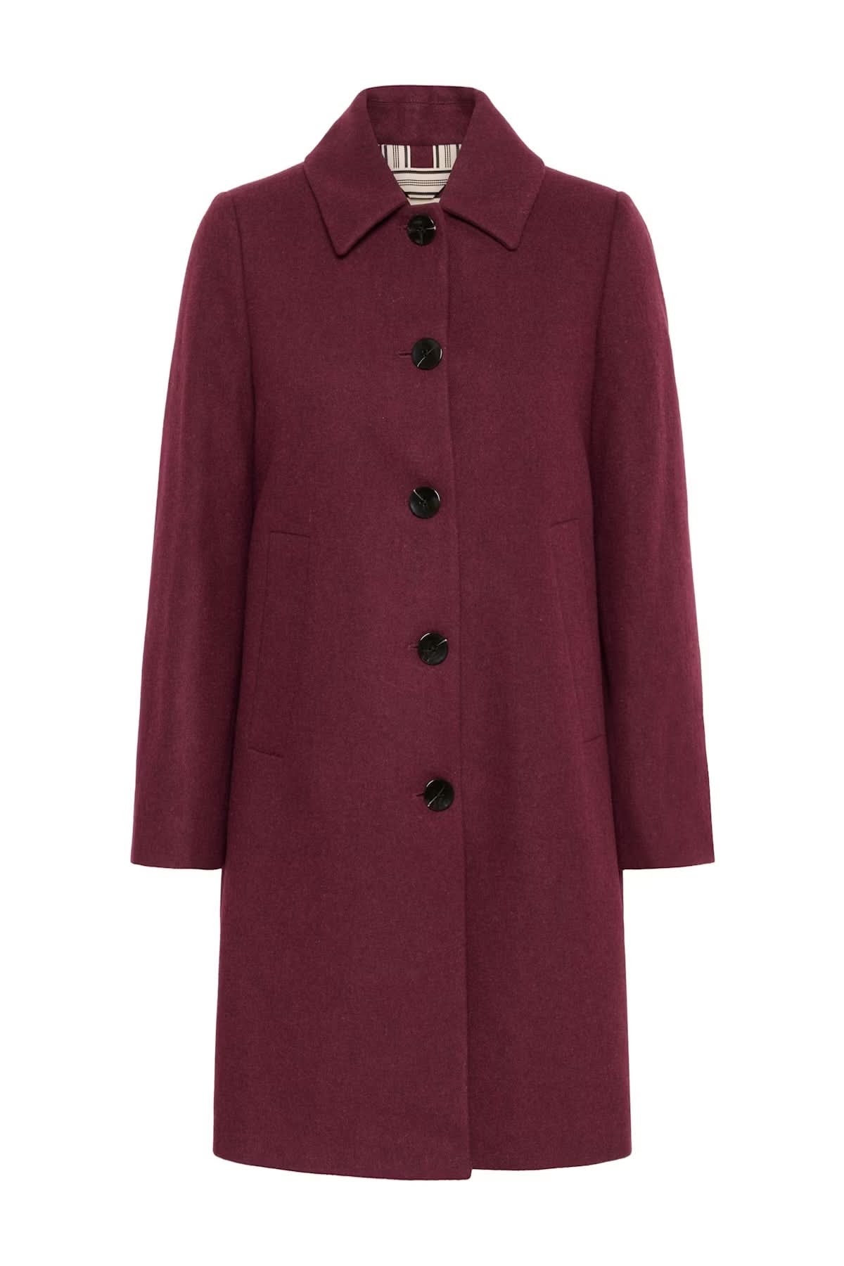 Description: This wool coat embodies timeless elegance with its straight cut and understated shirt collar. Its button closure and mid-thigh length make it a chic and practical piece for winter. Style tip: wear it over dress pants or dark jeans for a sophisticated look.