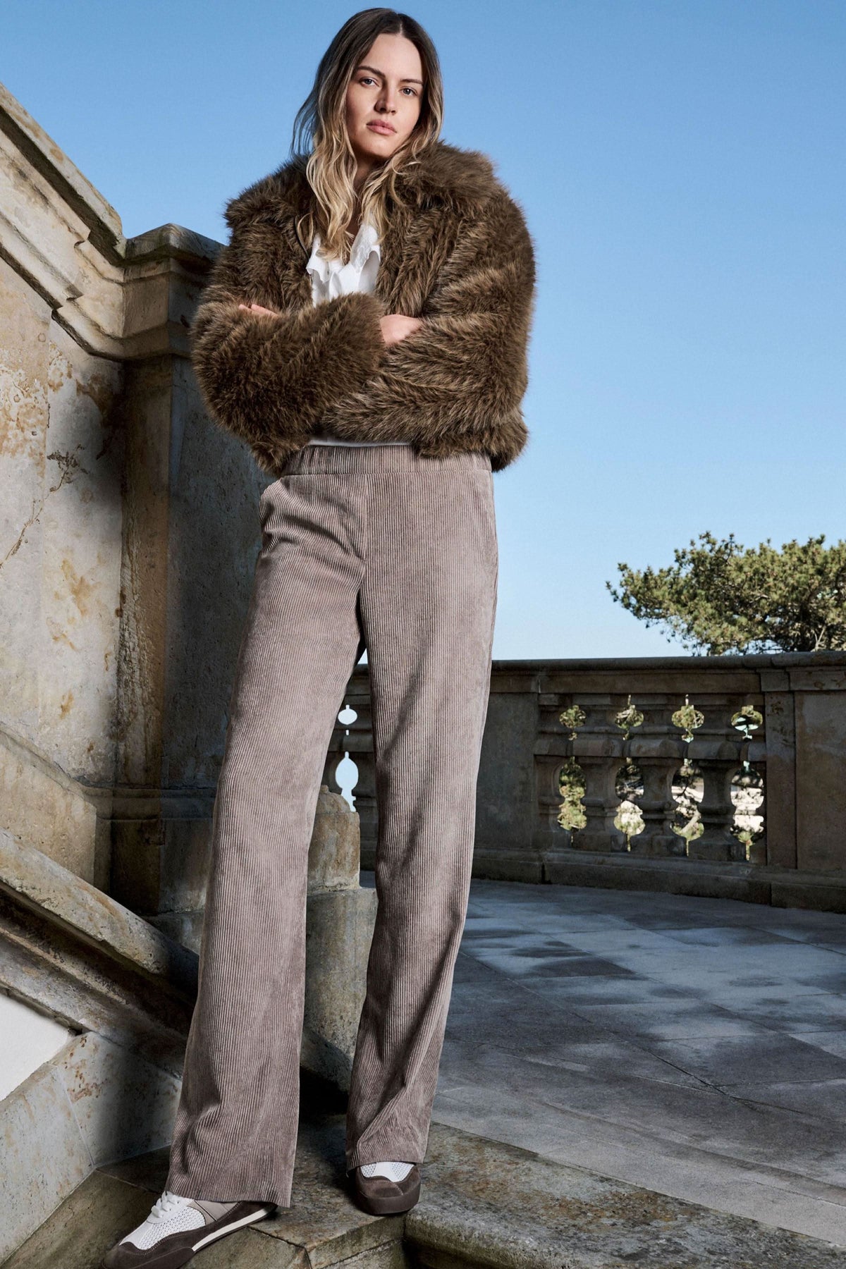 Description: Wide-leg corduroypants that are perfect for a look that's both retro and sophisticated. The elastic waistband with no closure offers total comfort while flattering the figure. Wear them with a fitted sweater or a flowing blouse for a chic fall look.
