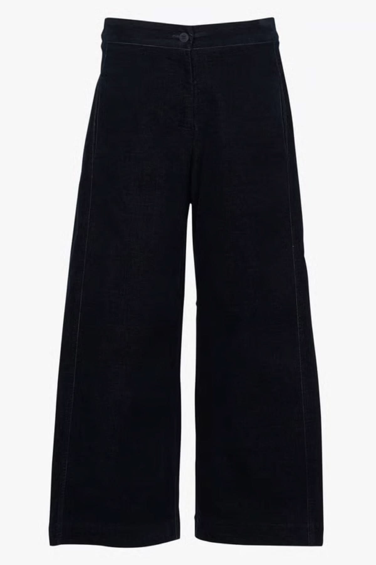 Description: These corduroy pants feature a loose, cropped fit for comfort and style. Their classic waist and refined texture make them a versatile piece for fall and winter. Style tip: Pair them with a fitted sweater or flowing shirt to balance the volume.