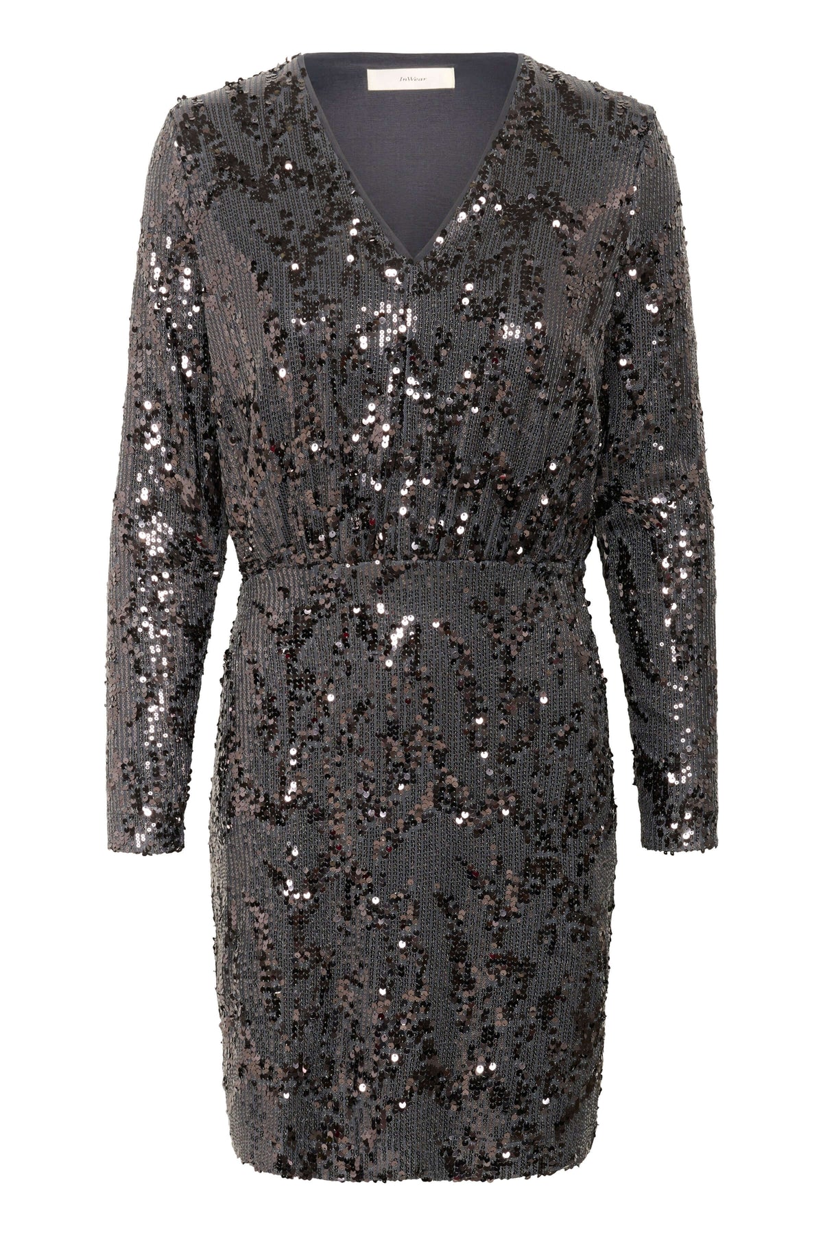 Description: This sequined dress captivates with its sophisticated sparkle and elegant style. Featuring a flattering V-neck and long sleeves, it hugs the figure while remaining comfortable. Perfect for festive evenings, it adds a touch of glamour and refinement to your wardrobe.