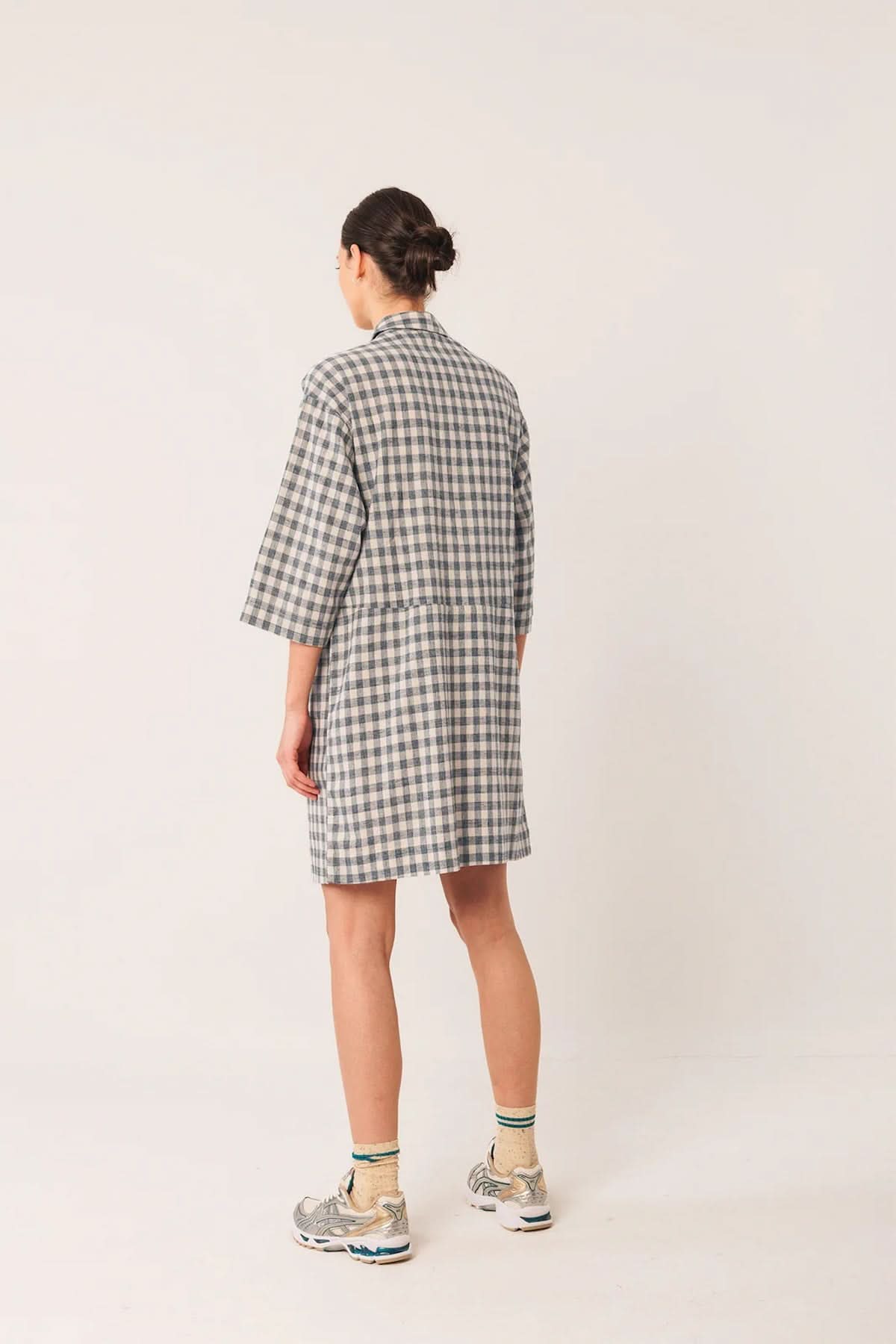 Description: This plaid tunic stands out with its straight fit and relaxed look. Its shirt collar and button placket add a classic touch, while its flared three-quarter sleeves add comfort and style. Fashion tip: wear it with sneakers for a casual look or belt it at the size for a more feminine silhouette.
