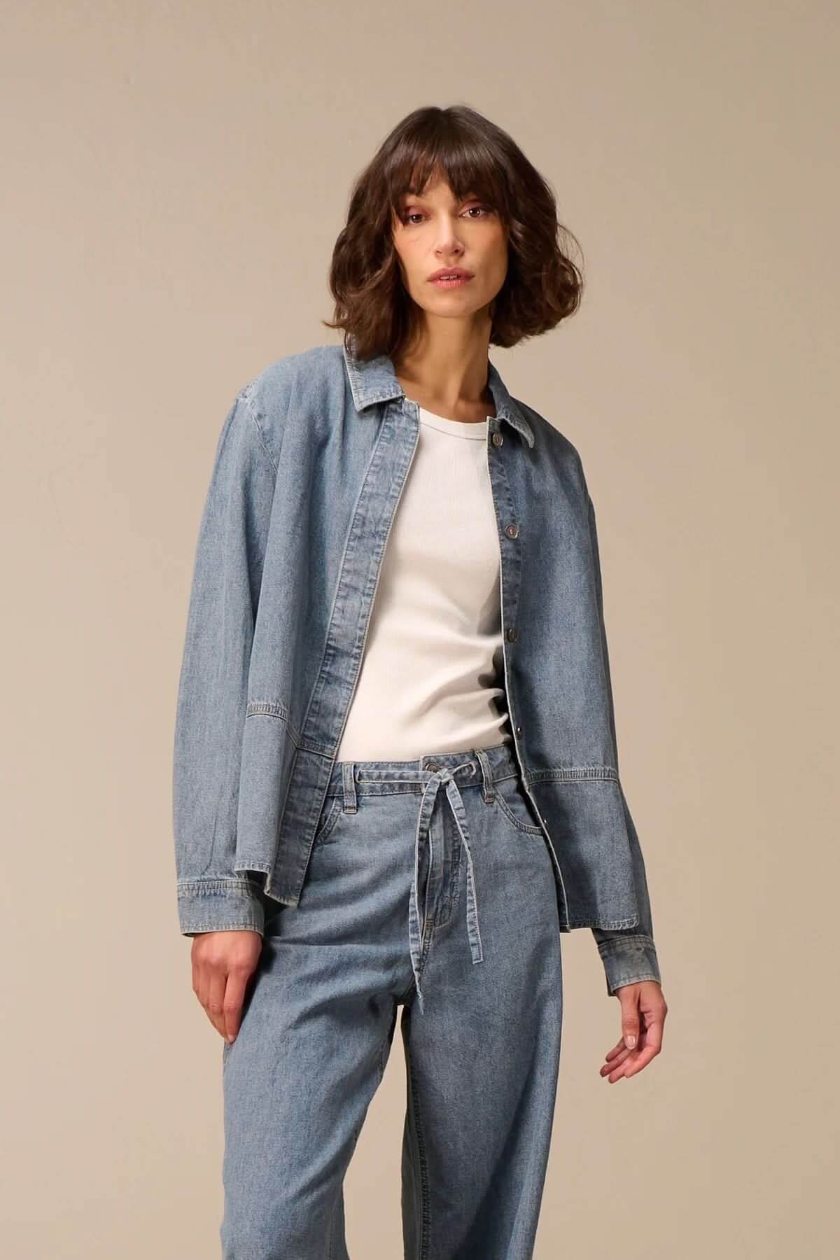 This denim jacket reimagines a wardrobe classic with a modern, casual silhouette. Its soft denim ensures comfort while offering a timeless look. Easy to layer, it perfectly complements everyday outfits.