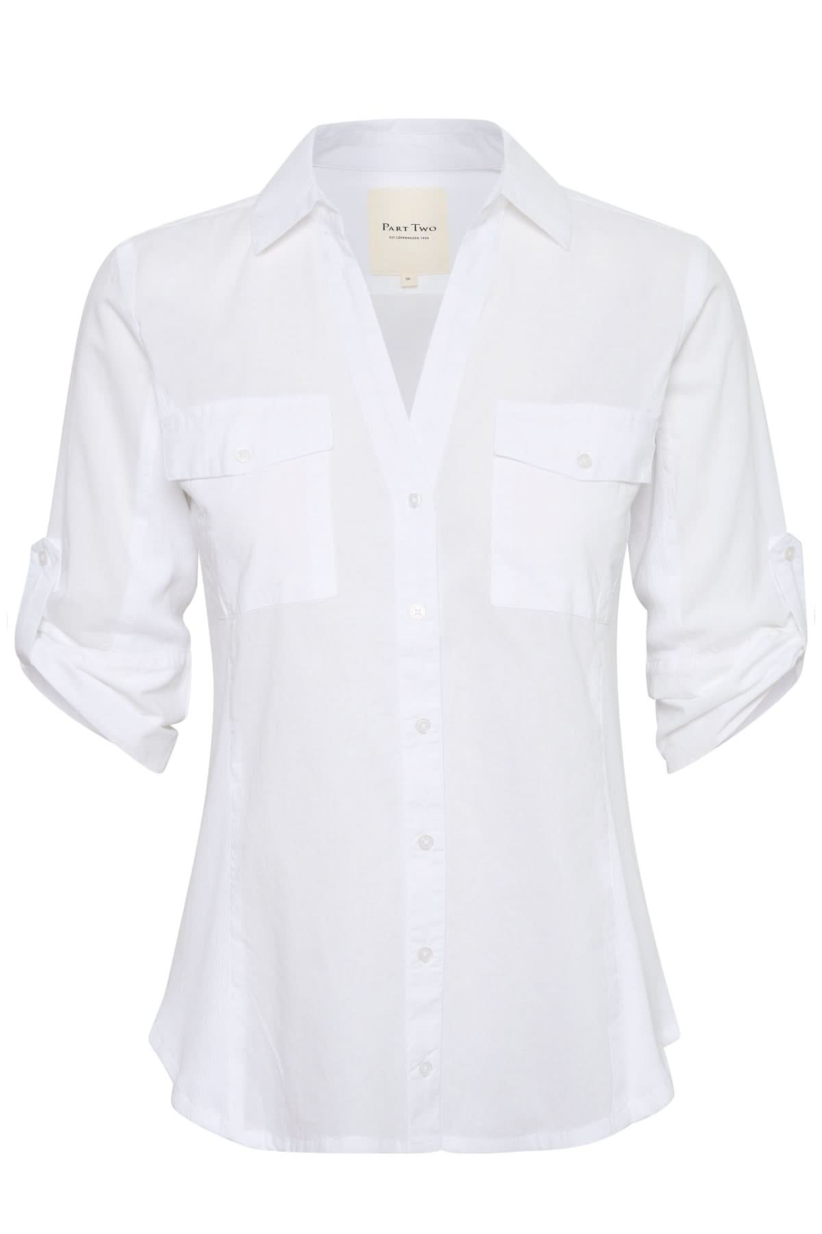 Description : Blouse Cortnia au tissu très léger subtilement diaphane pur coton, col V, manches 3/4 roulées sur ganse boutonnée, boutonnage pleine longueur, poches plaquées au buste, des insertions de jersey côtelé aux manches et sur les côtés pour épouser subtilement la silhouette, coupe parfaite elle s'associe sans effort avec un jeans, des jupes ou sous un blazer pour un look décontracté.