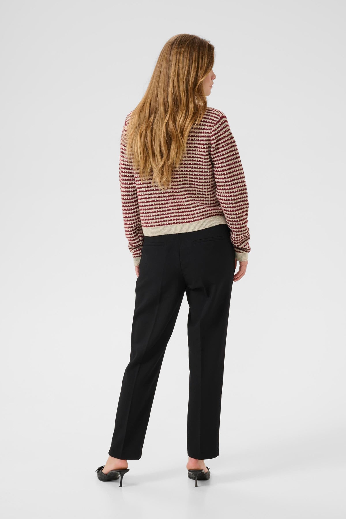 Description: Cardigan en maille à rayures, doté d’une coupe droite et d’un style classique revisité. Les poches plaquées à l’avant et la patte de boutonnage apportent une touche pratique et élégante. Conseil style : porte-le ouvert sur un chandail uni ou fermé avec un pantalon habillé pour un look polyvalent.