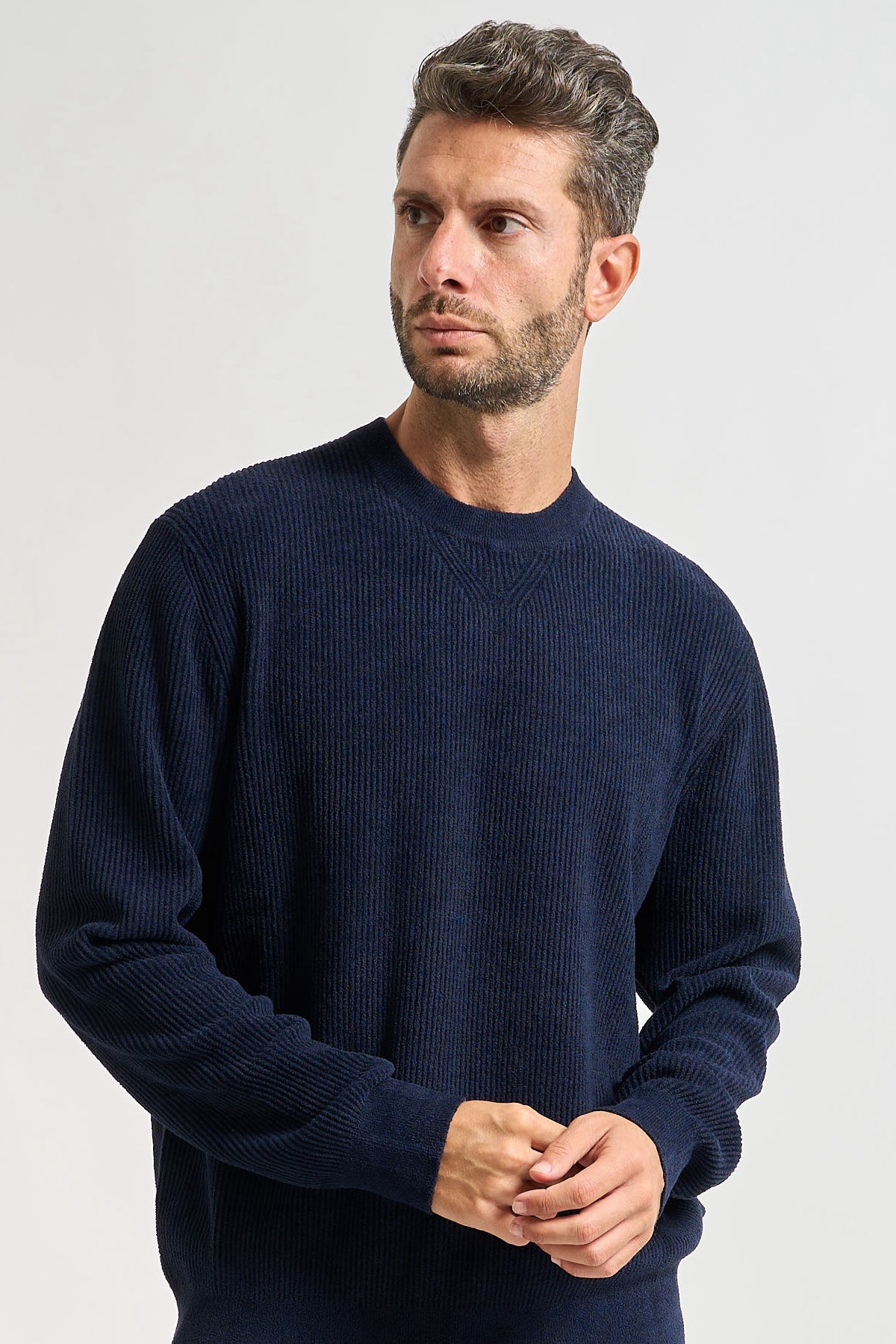 Chandail à col rond côtelé effet velours P-Horso