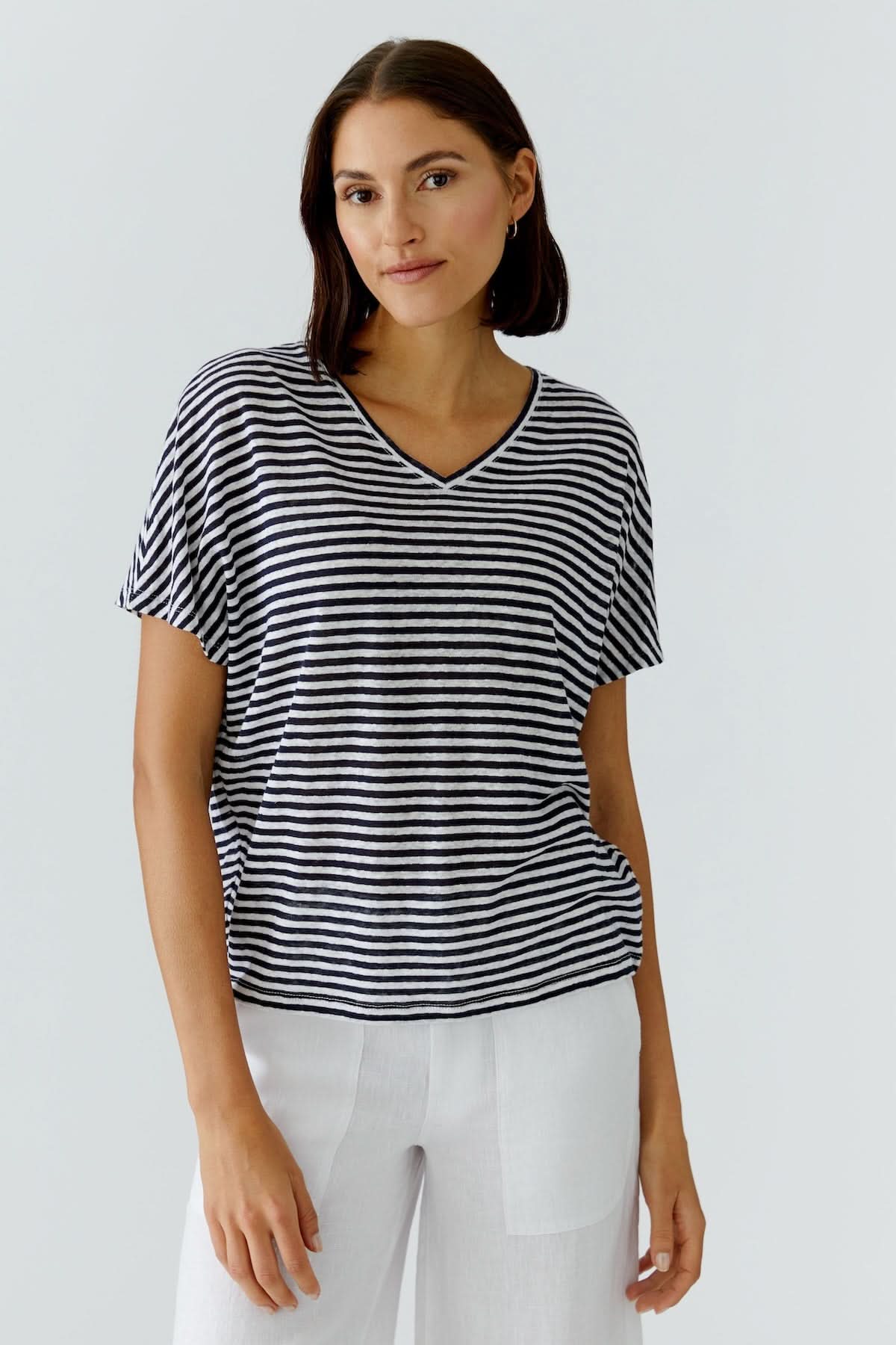 Ce chandail à rayures propose une silhouette décontractée et moderne parfaite pour le quotidien. Sa coupe fluide et son col en V apportent une touche féminine tout en assurant un confort optimal. Facile à porter, il s’agence aussi bien avec un jean qu’un pantalon plus habillé.