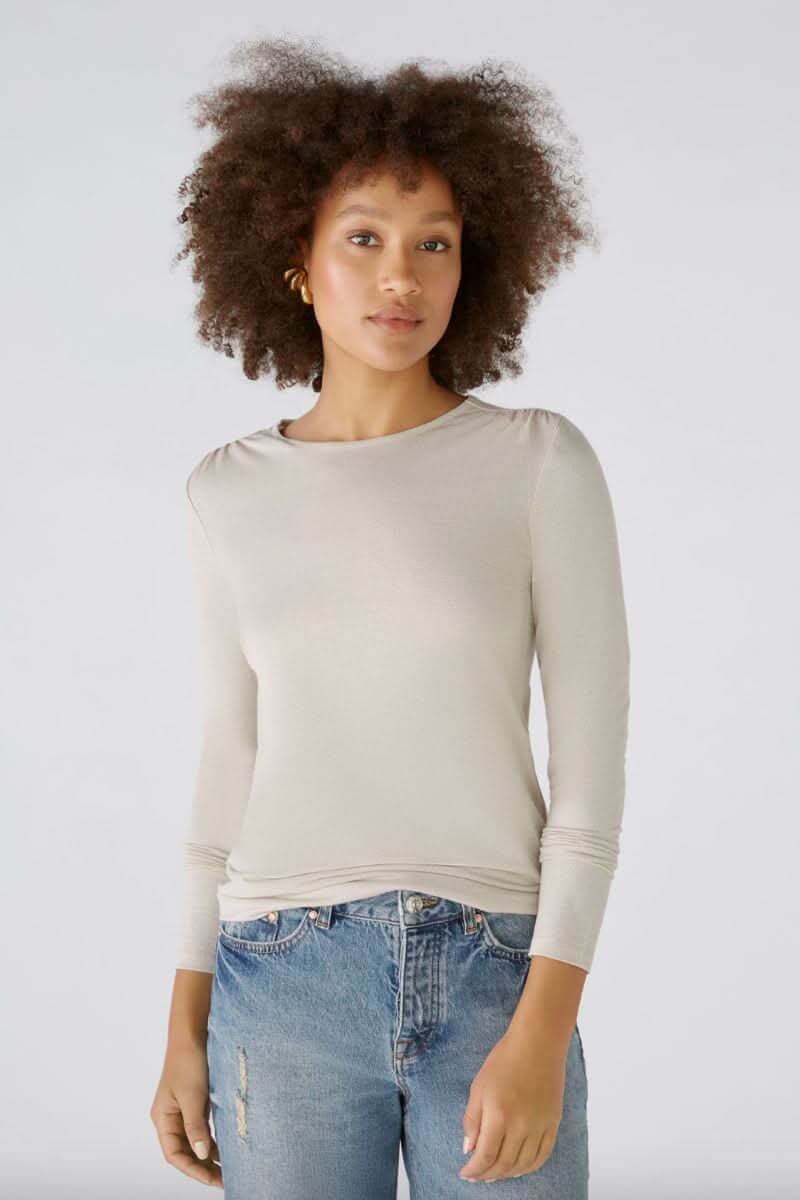 DESCRIPTION: Ce chandail à manches longues se distingue par sa qualité féminine et élastique, rehaussée de fils métalliques pour un effet brillant spectaculaire. Sa coupe ajustée et sa longueur régulière en font une pièce versatile, idéale pour porter en dessous ou seule. Les volants délicats aux épaules ajoutent une touche élégante, parfaite pour un look raffiné et sophistiqué.