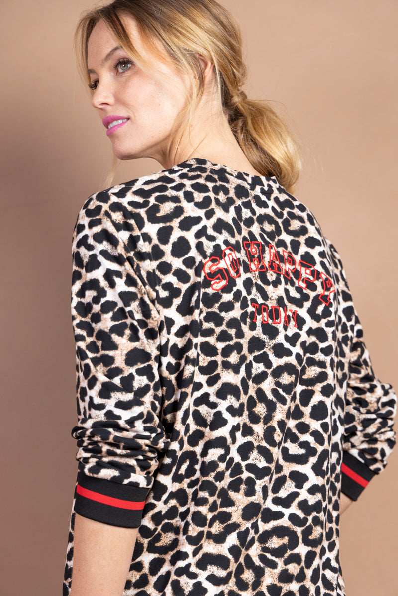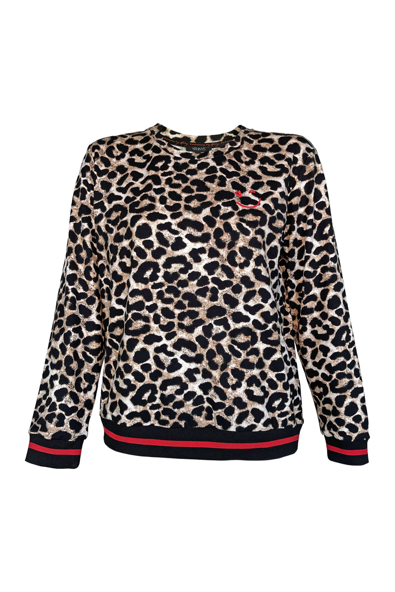 Ce chandail à imprimé audacieux apporte du caractère à la silhouette avec son motif animalier moderne. Ses finitions contrastantes aux poignets et à l’ourlet ajoutent une touche sportive chic qui dynamise l’ensemble. Confortable et polyvalent, il se porte aussi bien avec un pantalon habillé qu’avec un jean pour un look affirmé.