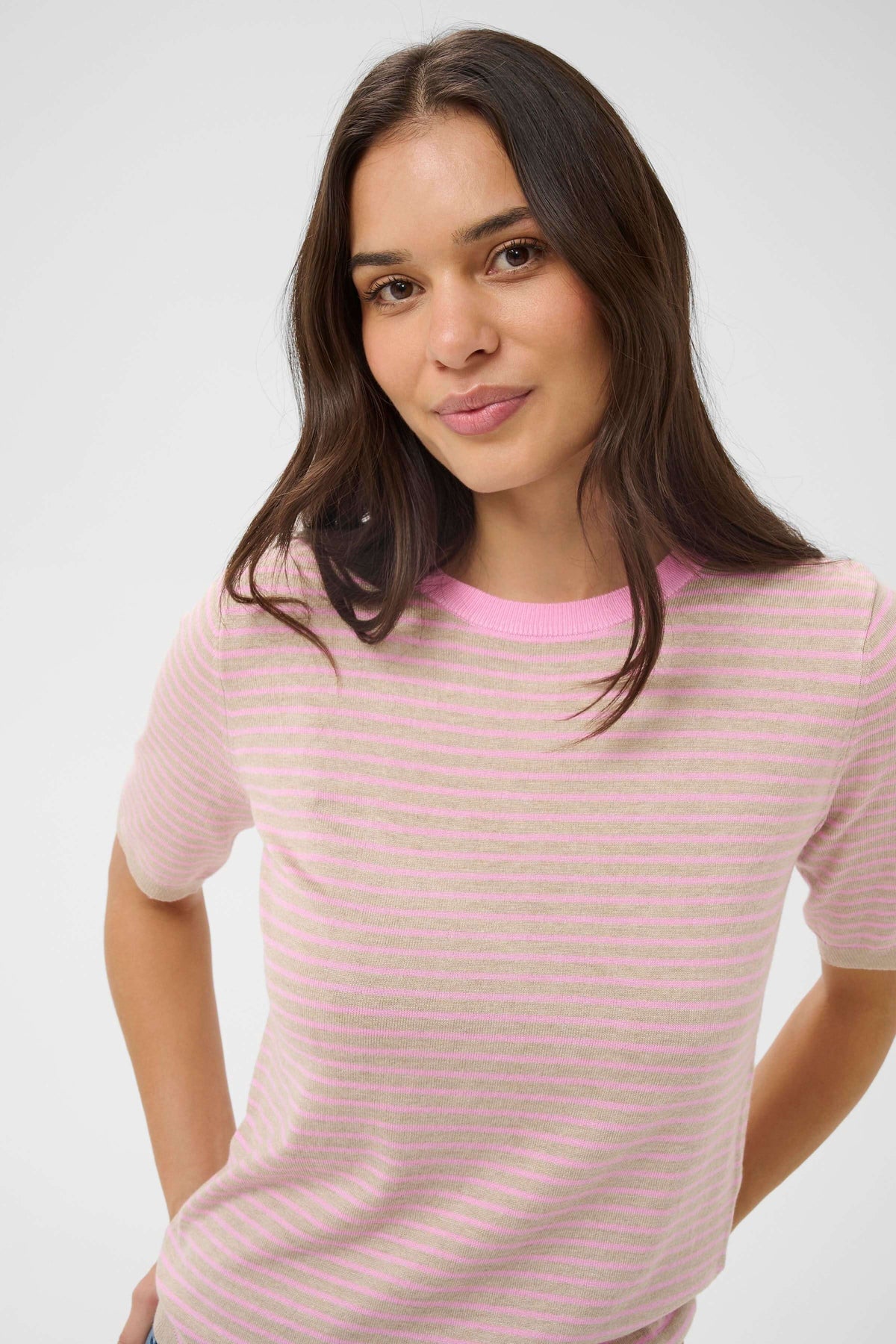Ce chandail en maille fine propose une silhouette décontractée et soignée, idéale pour un porté quotidien confortable. Son motif à rayures apporte une touche graphique intemporelle tout en restant facile à agencer. Léger et agréable à porter, il se prête aussi bien à une tenue décontractée qu’à un look plus structuré.