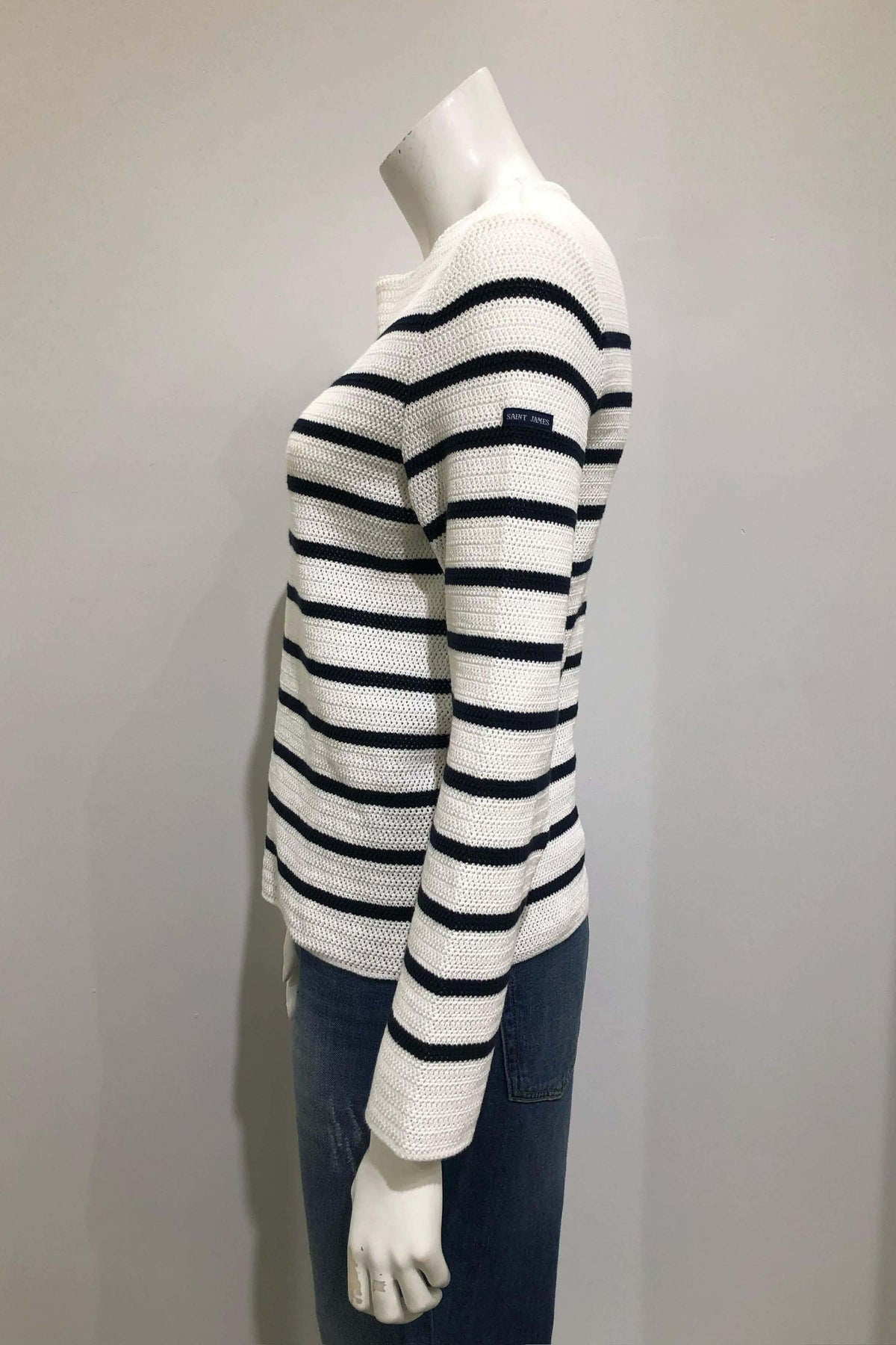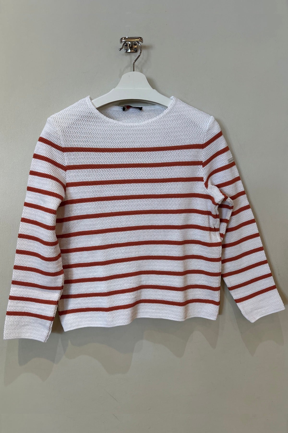 Description : Ce chandail en maille rayée offre une silhouette intemporelle et facile à porter au quotidien. Sa coupe droite assure un confort optimal, tandis que la maille texturée apporte une belle tenue et un toucher agréable. Un essentiel polyvalent, idéal porté seul ou superposé selon la saison.