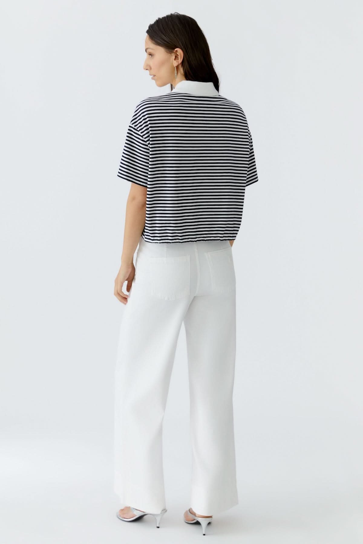 Ce chandail style polo revisite un classique avec une touche moderne et décontractée. Sa coupe fluide et son cordon ajustable à la taille permettent de structurer la silhouette selon vos envies. Idéal pour un look casual chic, il se porte facilement au quotidien.