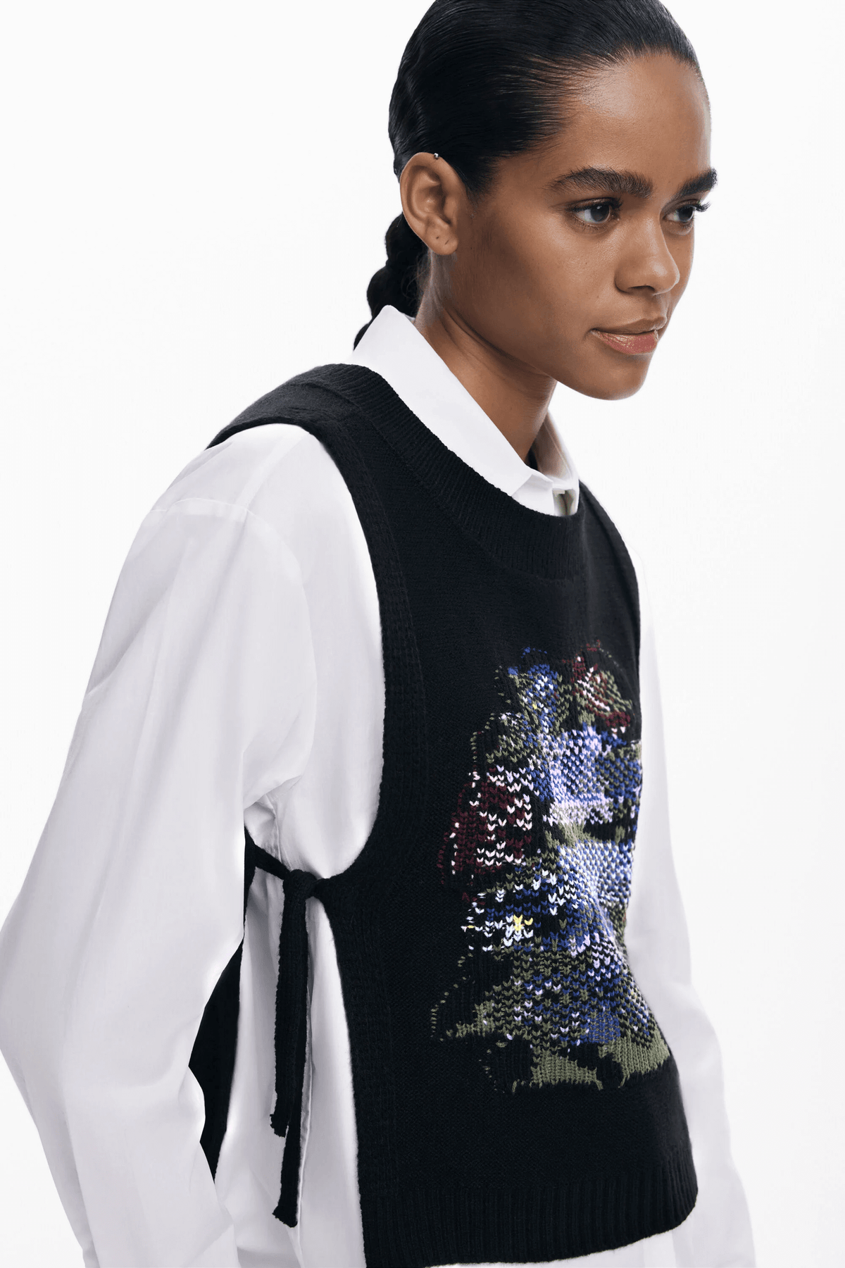 Description: Cette chemise à manches longues s’accompagne d’un chandail sans manches intégré, offrant un effet superposé moderne et raffiné. Son col classique et son jeu de textures entre la chemise et la maille créent une allure originale et sophistiquée. Une pièce polyvalente qui simplifie le style en un seul vêtement.