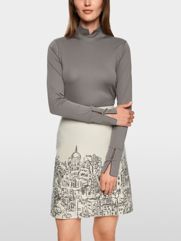 Description: Ce col roulé moderne séduit par son col fendu et ses détails raffinés. Sa coupe ajustée met en valeur la silhouette tandis que ses fermetures zippées discrètes aux poignets ajoutent une touche élégante. Conseil style : portez-le avec une jupe plissée et une ceinture large pour un look chic et affirmé, ou avec un pantalon classique pour une allure plus sobre.
